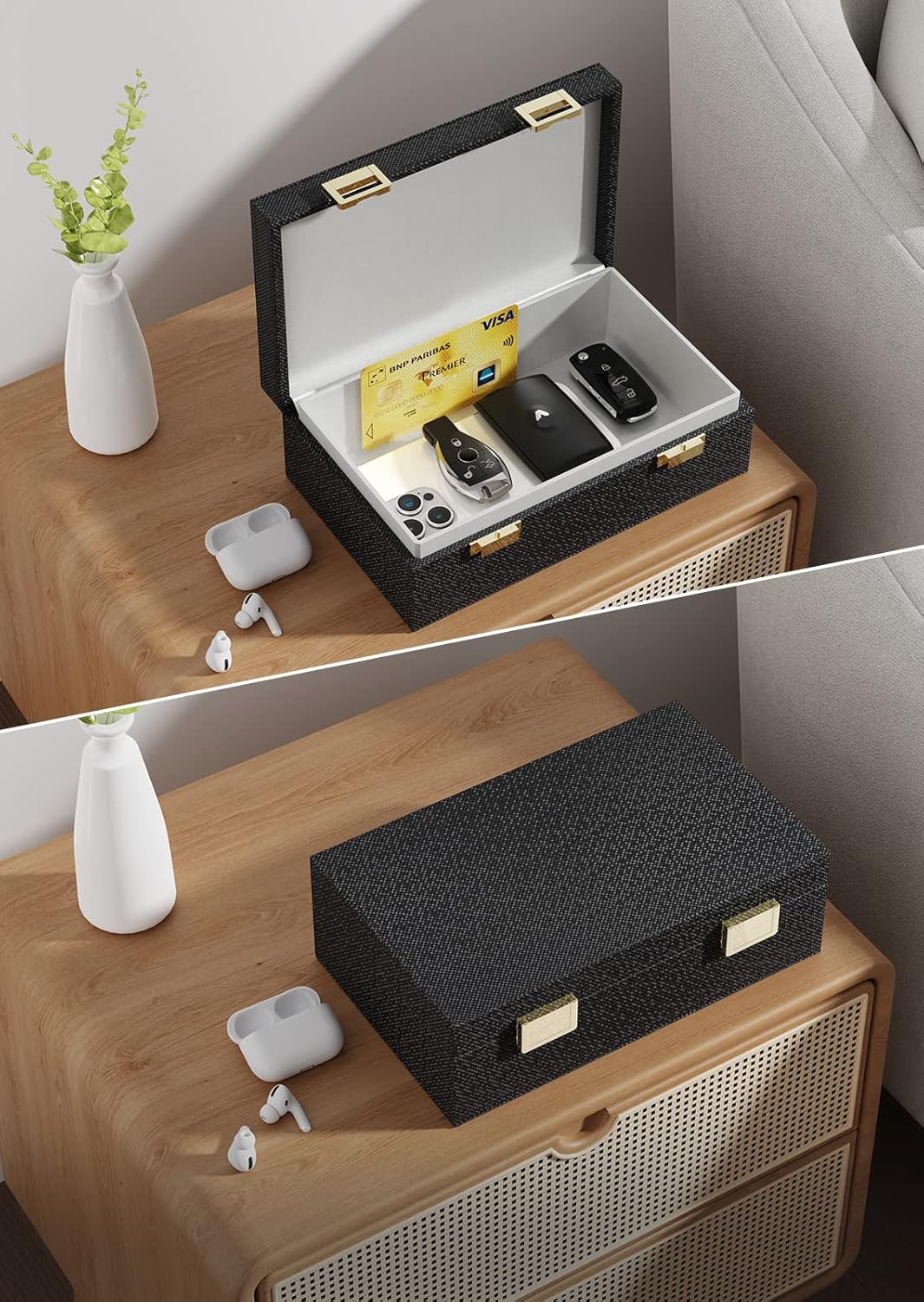 - Geräumiger Innenraum - Die schlüsselbox für funkschlüssel hat eine verbesserte Grösse von 21,2 x 13,2 x 7 cm, die gross genug ist, um die Elektronik Ihrer ganzen Familie unterzubringen. Diese rfid blocker autoschlüssel passt problemlos in einen