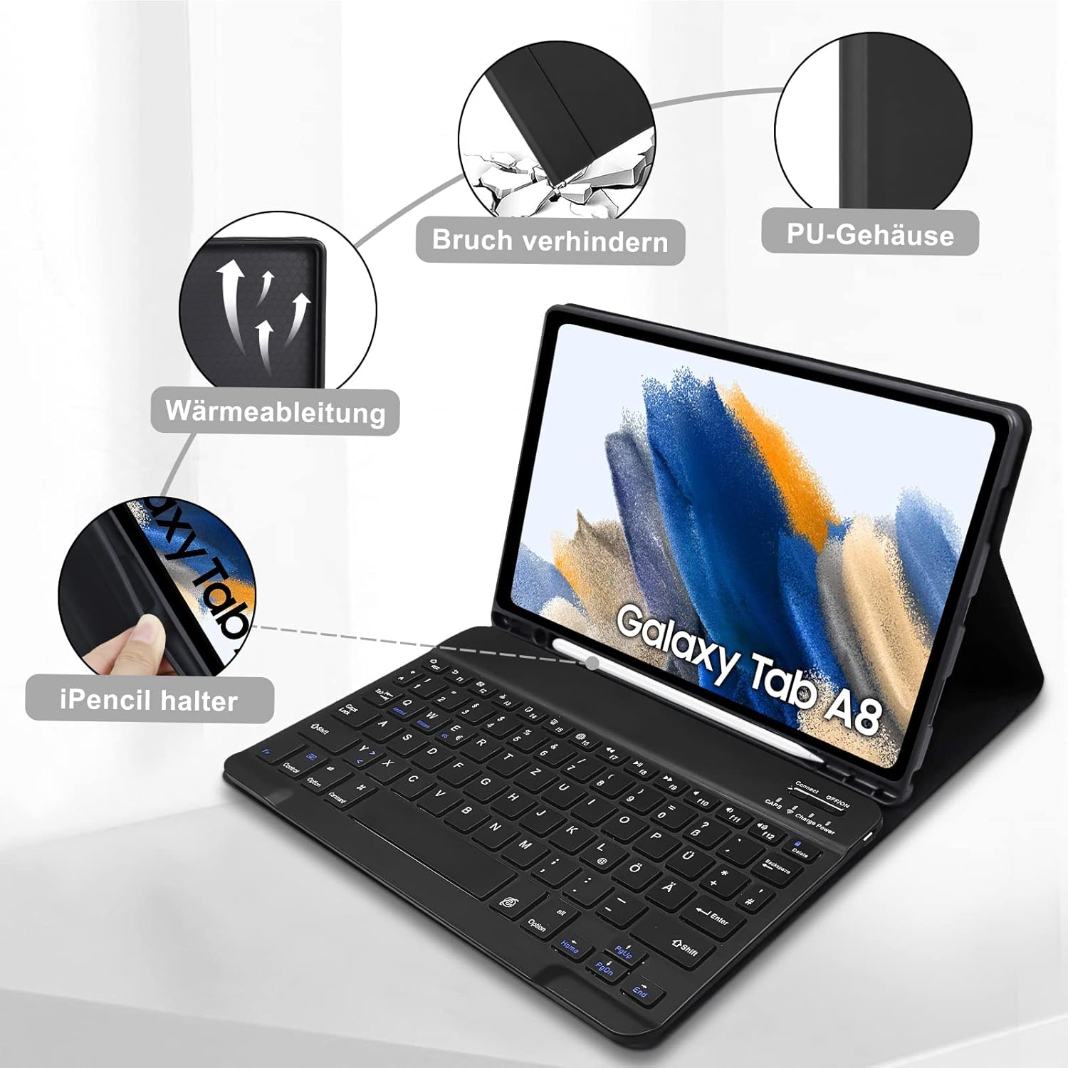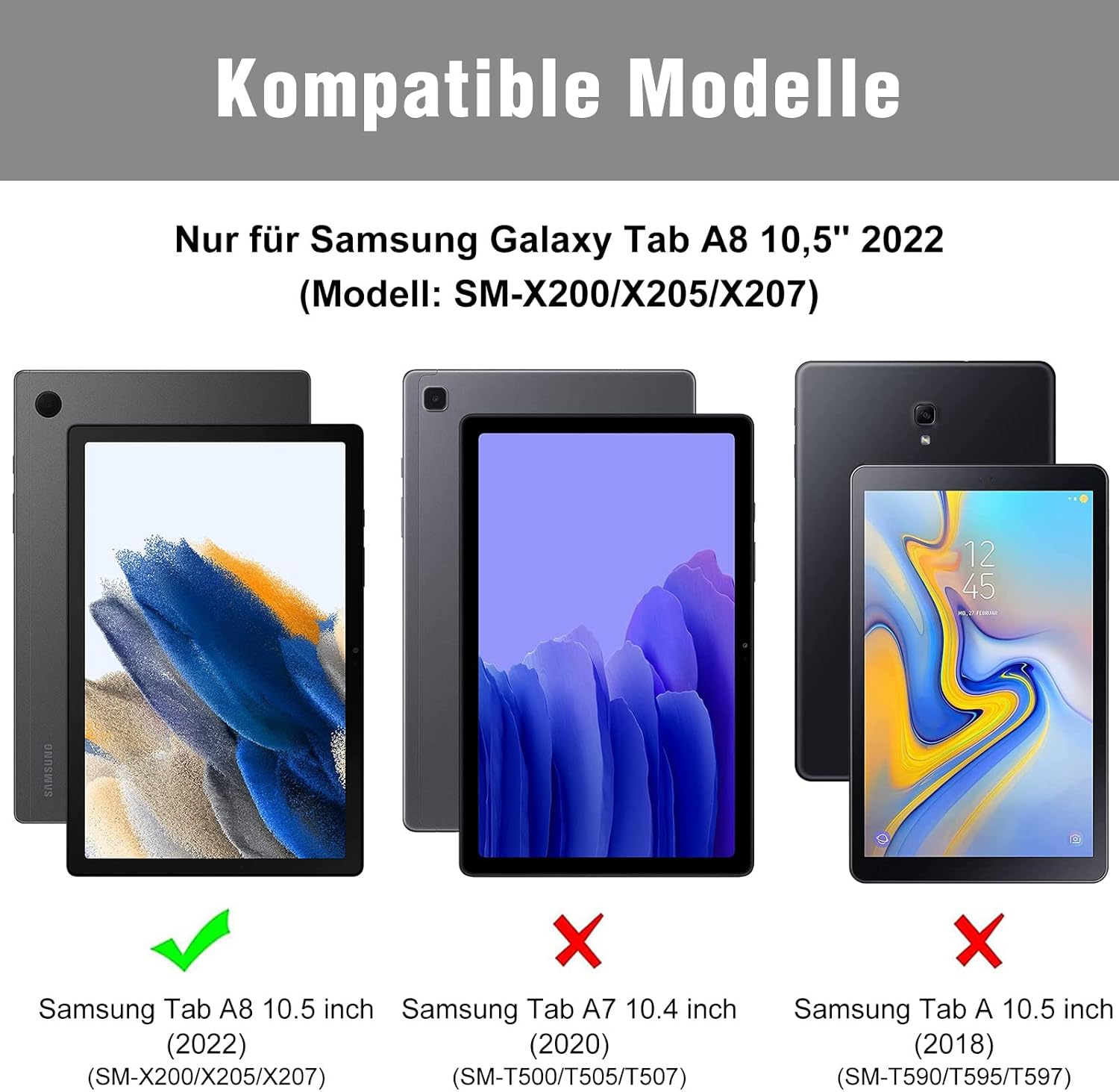 - ⌨ Kompatibilität - Nur geeignet für Samsung Galaxy Tablet Tab A8 10.5" 2021 (Modell: SM-X200/ X205/ X207). Bitte überprüfen Sie das Modell Ihrer Tablette vor dem Kauf.