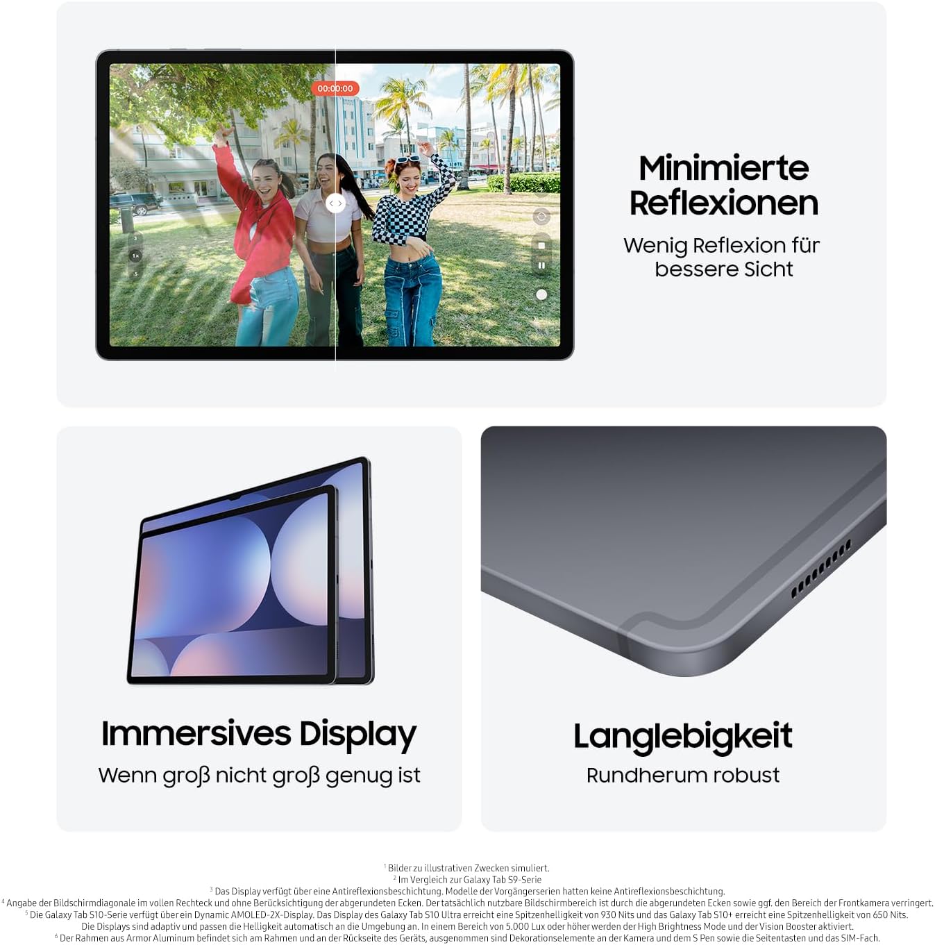 - Ein grosses Display: Samsung Tablet mit Dynamic AMOLED 2X Display, Antireflexionstechnologie und Vision Booster für passende Sicht bei schwierigen Lichtverhältnissen² ³ ⁶