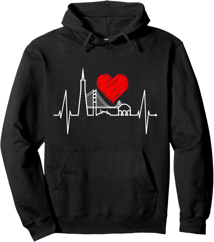 PRODUKTBESCHREIBUNGEN San Francisco Skyline mit deinem Herzschlag aus Kalifornien - Dein Herz schlägt California? Wahrzeichen wie die Golden Gate Bridge, die Transamerica Pyramid, die Cable Cars und die Lombard Street lassen deinen Puls schnell steigen? I love San Francisco! Kalifornien Outfit für jeden San Francisco Fan, Besucher, Reise und Tourist. California Silhouette mit Herz für alle Kalifornien Fans in deiner Familie, San Francisco Reiseführer und für die nächste Tour an die USA Westküste. Ich liebe San Francisco! Dieses San Francisco Skyline Herzschlag Kalifornien San Francisco Kleidungsstück ist von Kalifornien Skylines Für USA Westküste Trip erstellt.