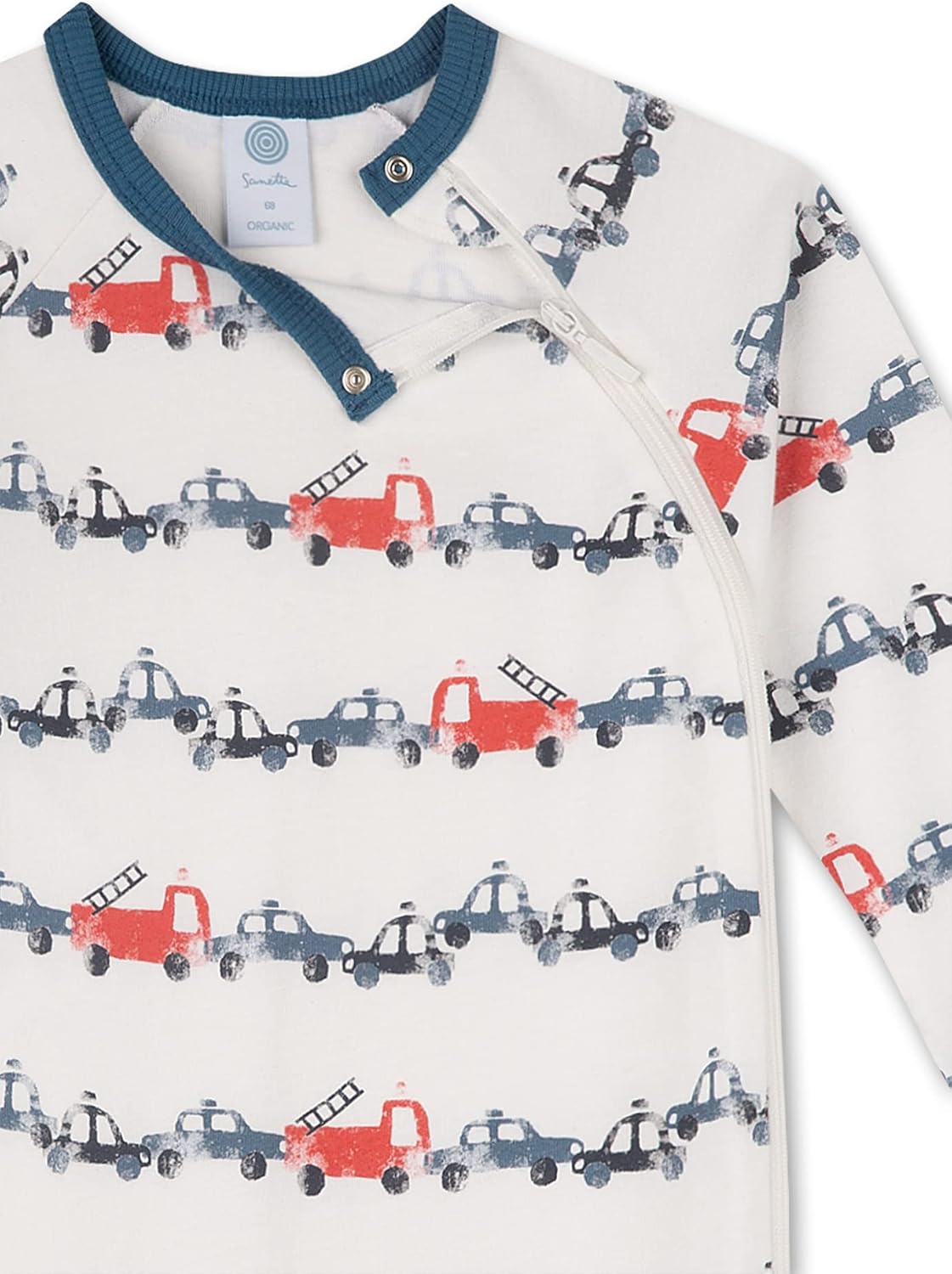 PRODUKTBESCHREIBUNGEN Liebevoll gestalteter Schlaf-Overall von Sanetta für Jungen mit einem bunten Feuerwehrauto-Allover.