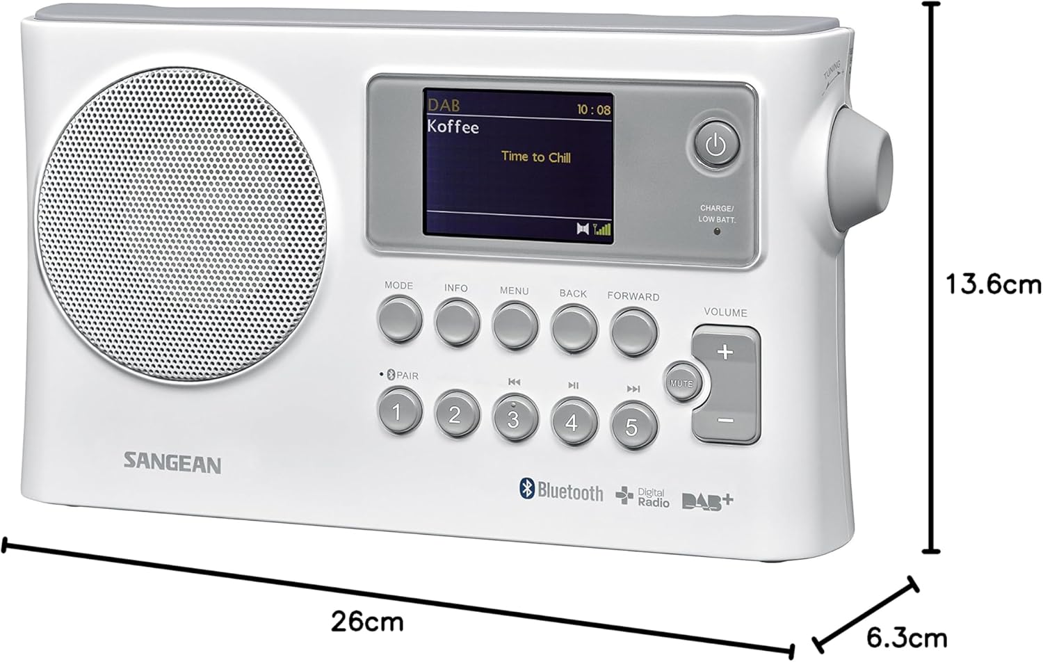 - Typ: tragbares Digitalradio mit DAB+/UKW-Tuner, Bluetooth für kabelloses Audio-Streaming, hochauflösendem LC-Display mit Hintergrundbeleuchtung uvm.