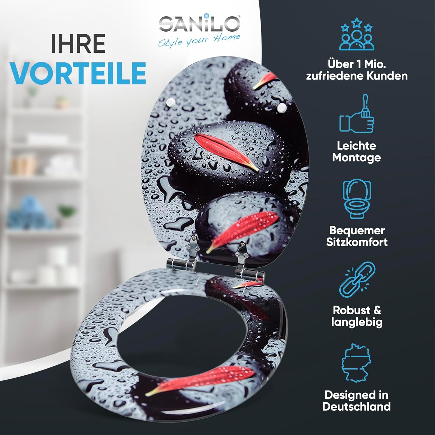 Sanilo WC Sitz mit Absenkautomatik, viele schöne schwarze Toilettendeckel zur Auswahl, hochwertige u