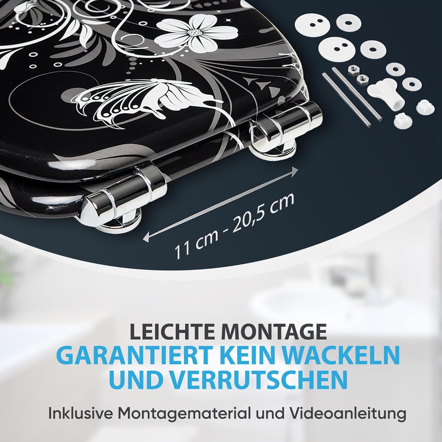 - Universell ✓ Durch die Form des Toiletten-Deckels passt er auf alle handelsüblichen Hänge- und Steh WC-Becken und kann mithilfe des mitgelieferten Montagematerials leicht befestigt werden