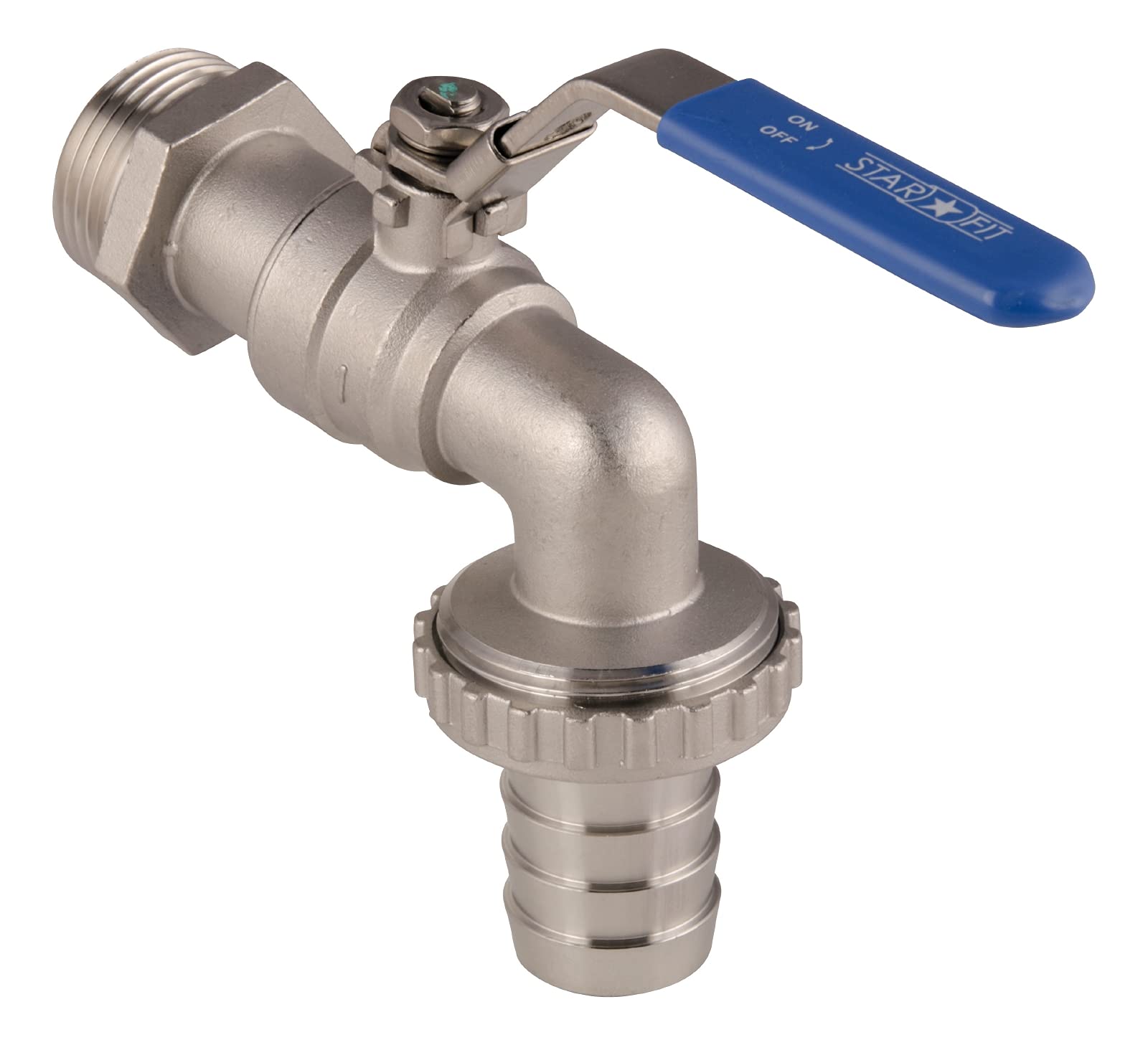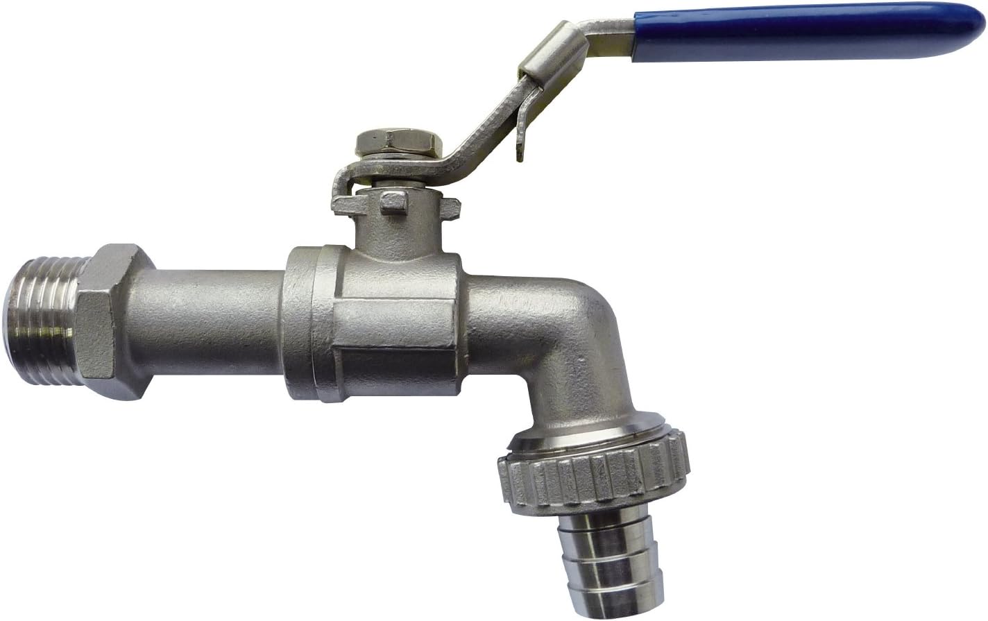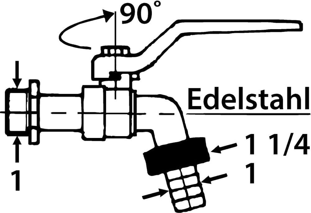 - ➤ KALTWASSERHAHN: • Edelstahl Kugelauslaufventil • Mit Schlauchverschraubung 1/2 • Anschluss: 1 Zoll • Inklusive Hebel-Schliess-Sicherung • Hebel um 90 Grad verstellbar • Rostfrei • Hebel mit Kunststoff-Überzug in Blau