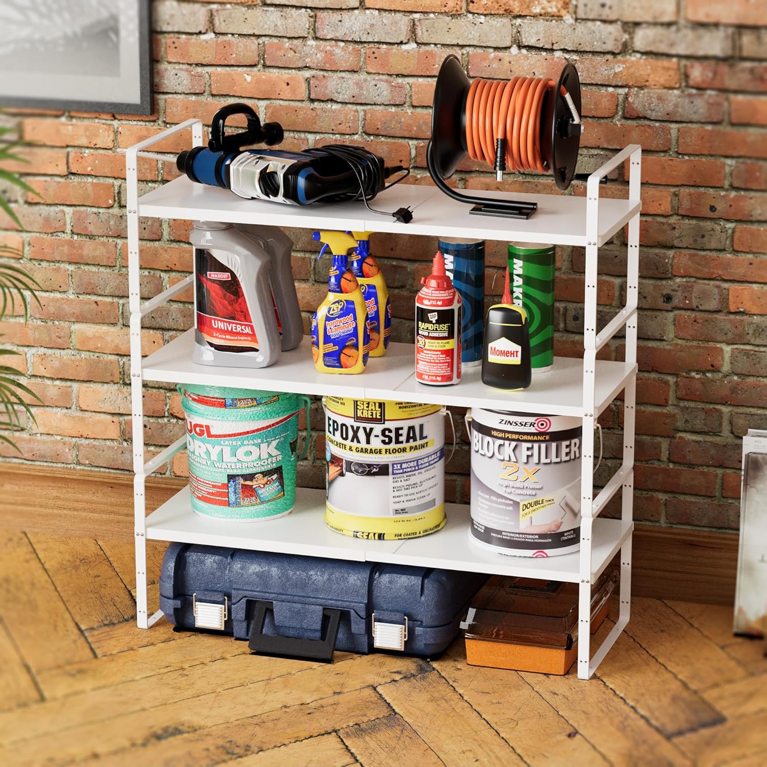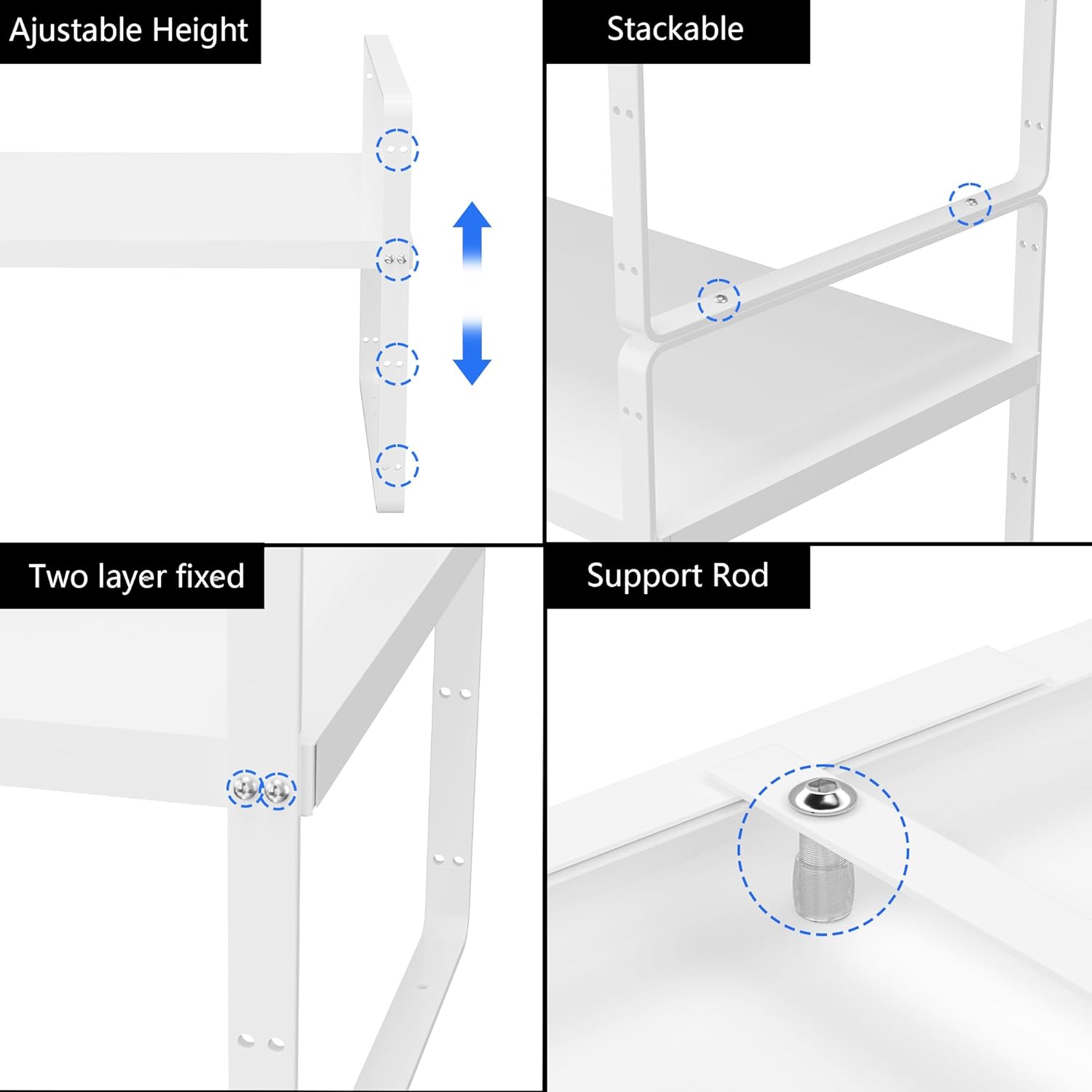 - Stapelbar - Es gibt insgesamt 8 Löcher oben und unten am stapelbaren Regalgestell. Sie müssen nur die Schrauben mit Löchern anpassen, wenn Sie die Schrankregale stapeln möchten