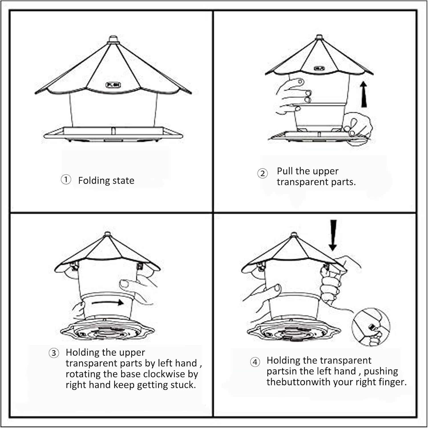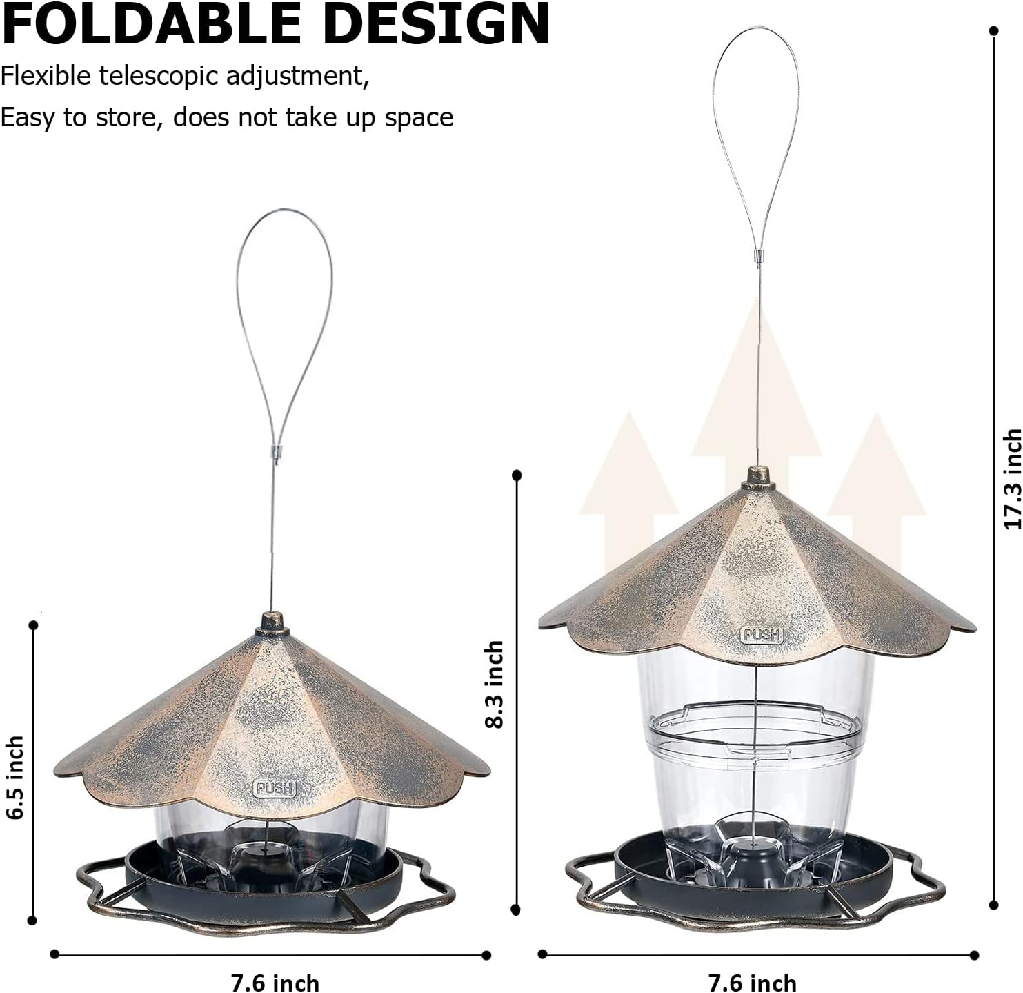 - 🕊【Einfach zu wechseln】- Drücken Sie den PUSH von Vogelfutterhäuser, um den Deckel zu öffnen, geben Sie Körnerfuttersamen usw. in das vögel futterhaus, schliessen Sie den Deckel und stellen Sie das futterhaus vögel hängend auf den Balkon,