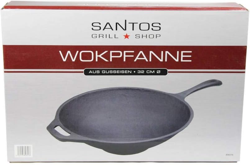 - TECHNISCHE DATEN - SANTOS Wokpfanne aus Gusseisen - Innenmass: ø31,8 cm - Länge inkl. Griffen: 48,8 cm - Gusseisen
