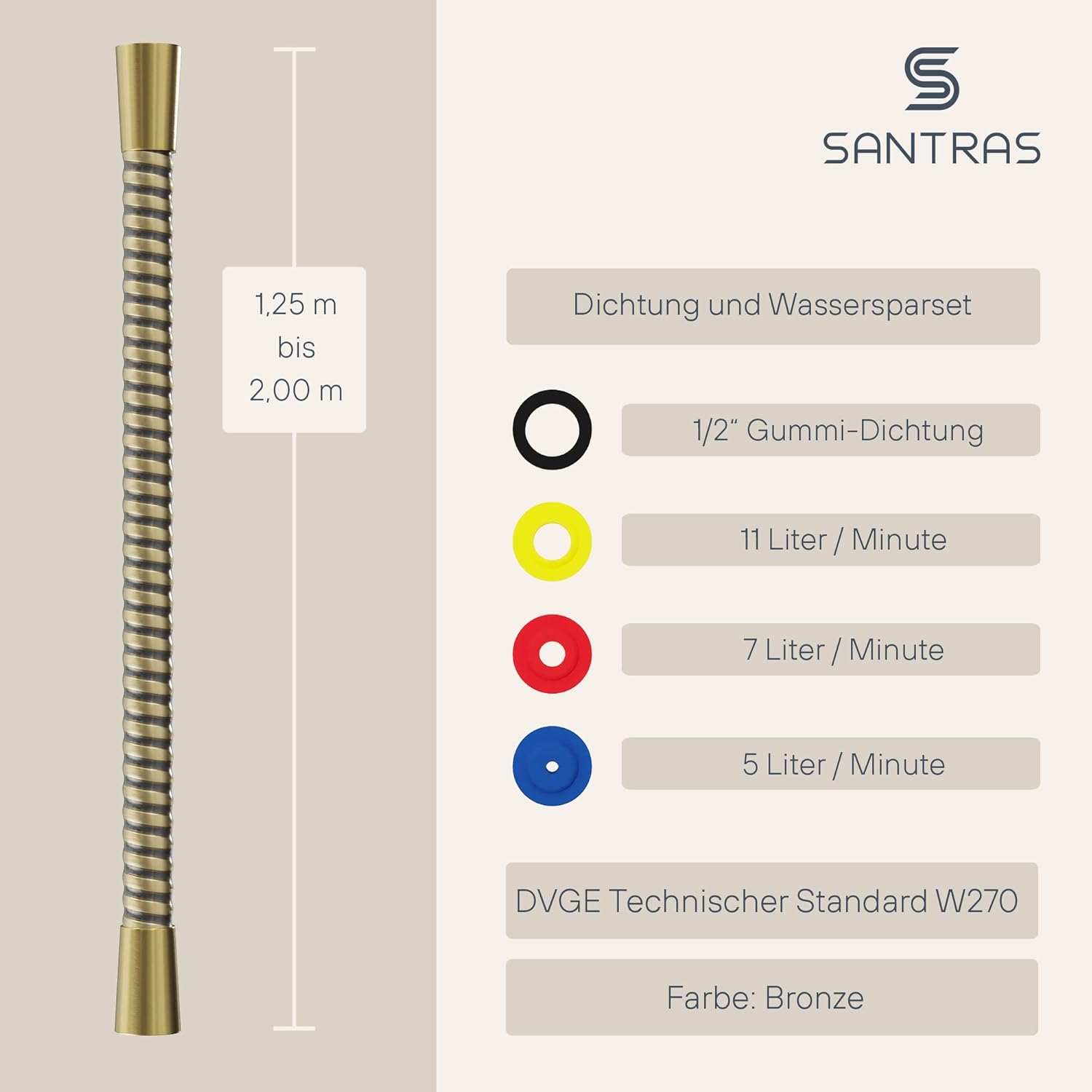 - 🚿 BESONDERS HOCHWERTIG – Wir stehen für hochwertige Sanitärprodukte aus Deutschland. SANTRAS Produkte werden alle von Hand in Iserlohn produziert. Vom Zuschneiden des Schlauchs bis zum Verpacken werden alle Schritte in unserer Manufaktur erledigt.