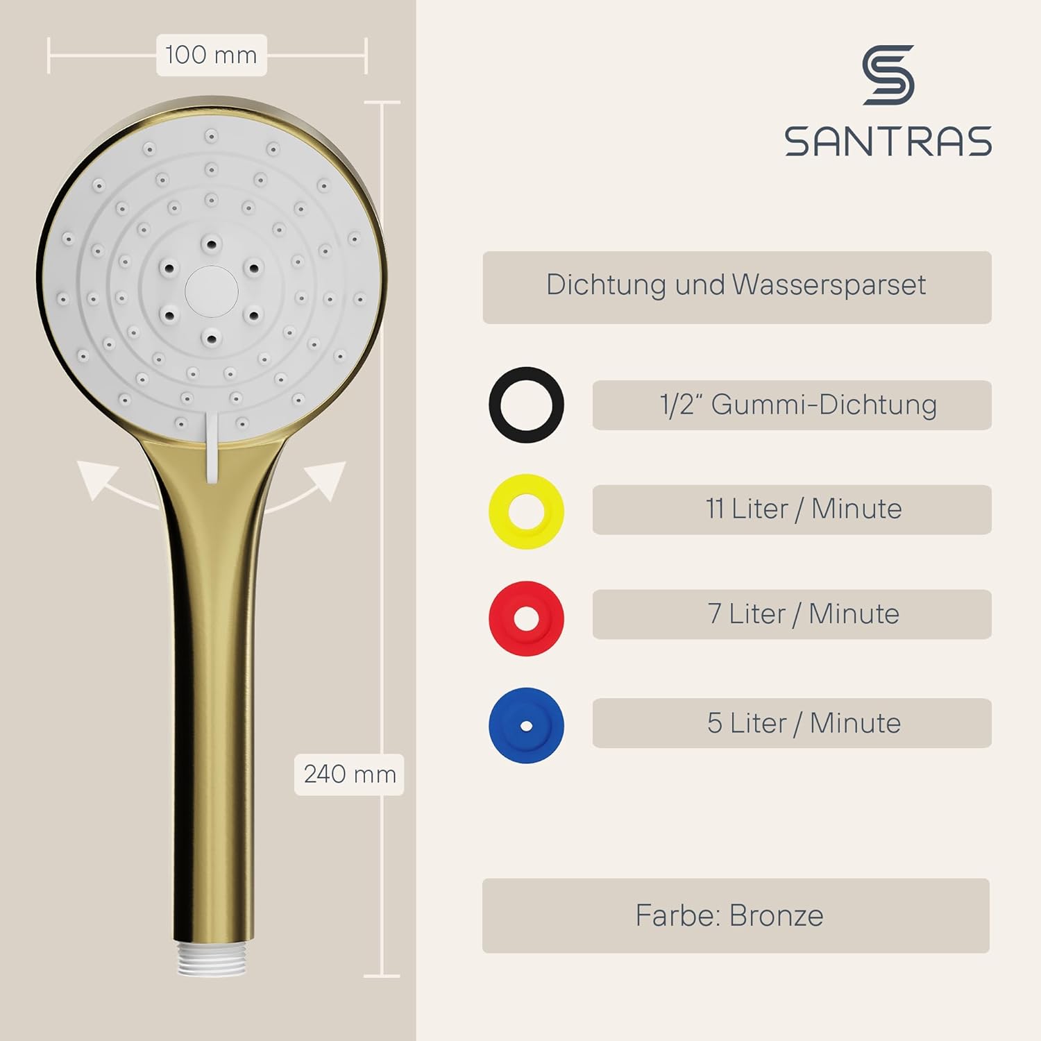 SANTRAS® Handbrause mit dreifach verstellbaren Duschkopf in Bronze Bronze Dreifach verstellbar, Bron