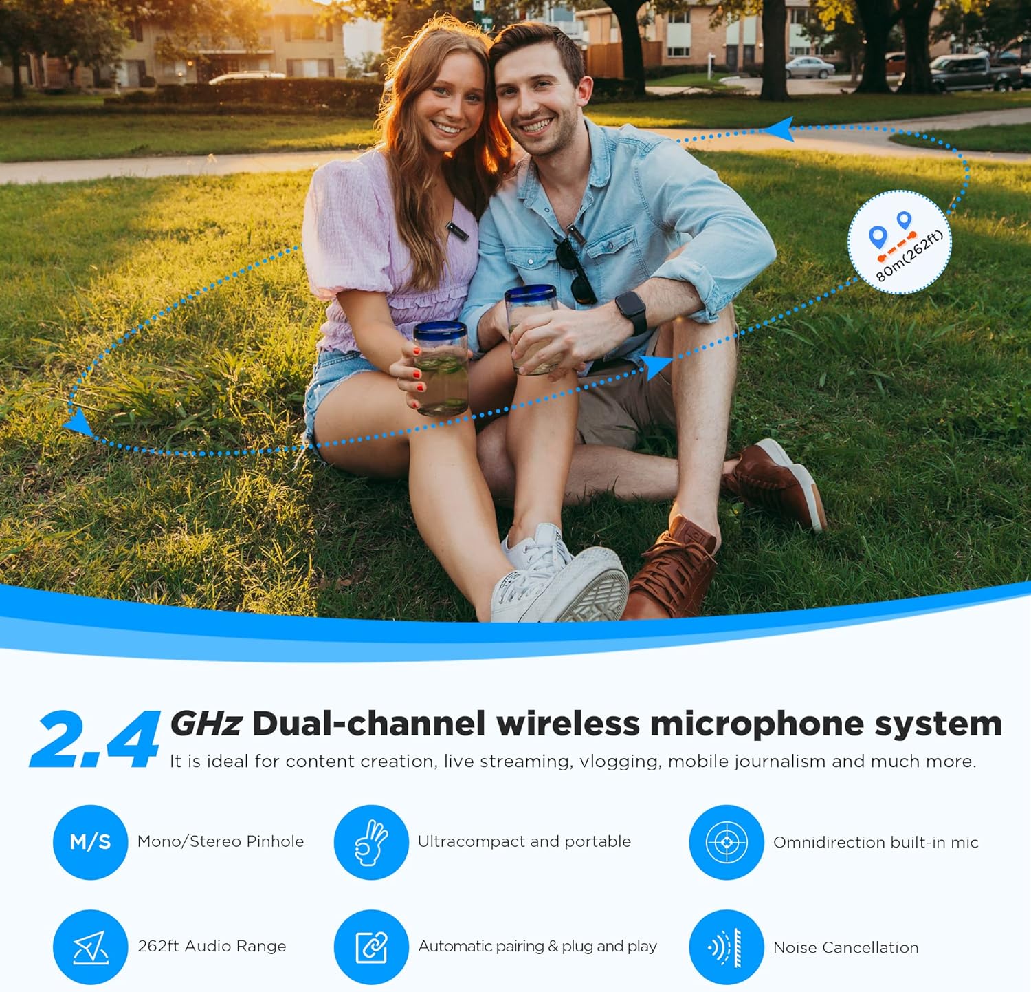 - 2,4-GHz-Funkmikrofonsystem: Das Funk-Lavalier-Mikrofonsystem Blink 300 arbeitet auf dem störungsfreien 2,4-GHz-Spektrum und springt automatisch auf freie Kanäle, um statische Geräusche und Audioausfälle zu vermeiden