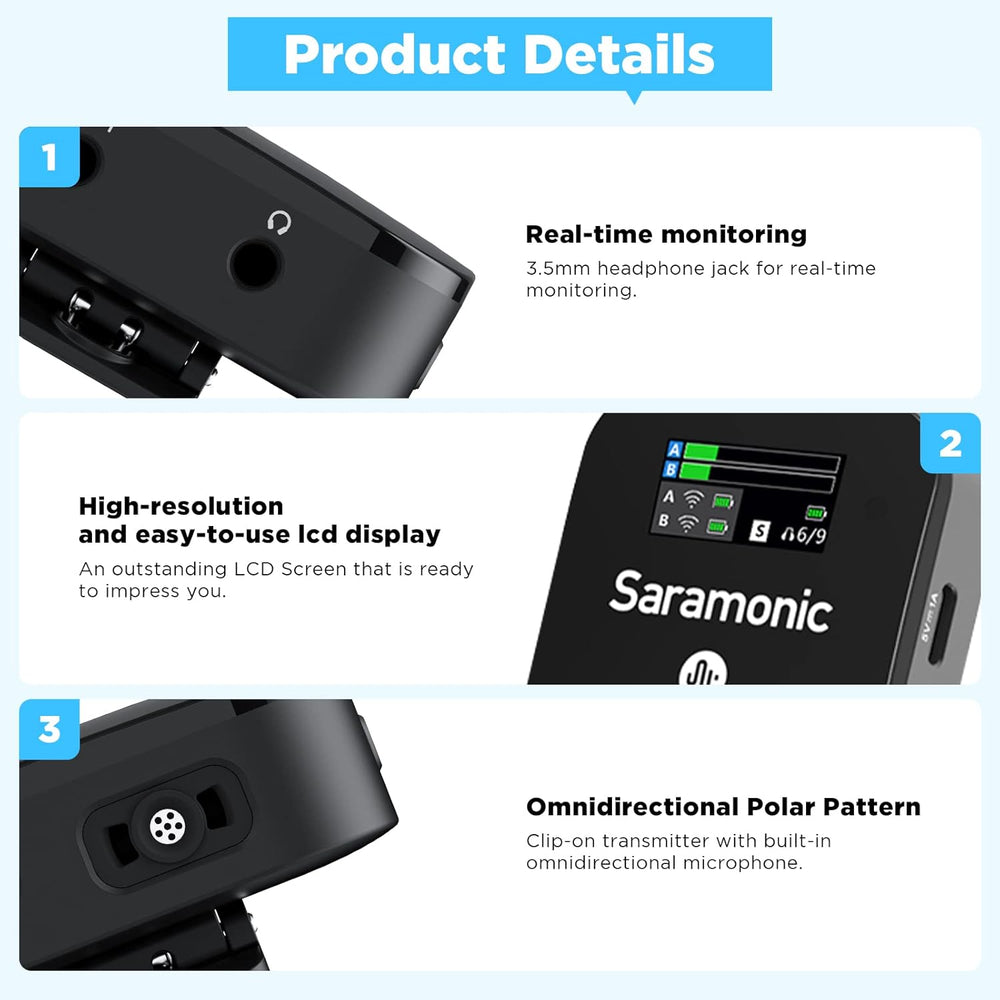 - e Saramonic Kaufen Sie ohne Risiko. Wir bieten 24-monatigen sorgenfreien Support und einen freundlichen 24/7-Kunden. Wenn Sie Fragen haben, werden wir Ihnen so schnell wie möglich eine Lösung anbieten.