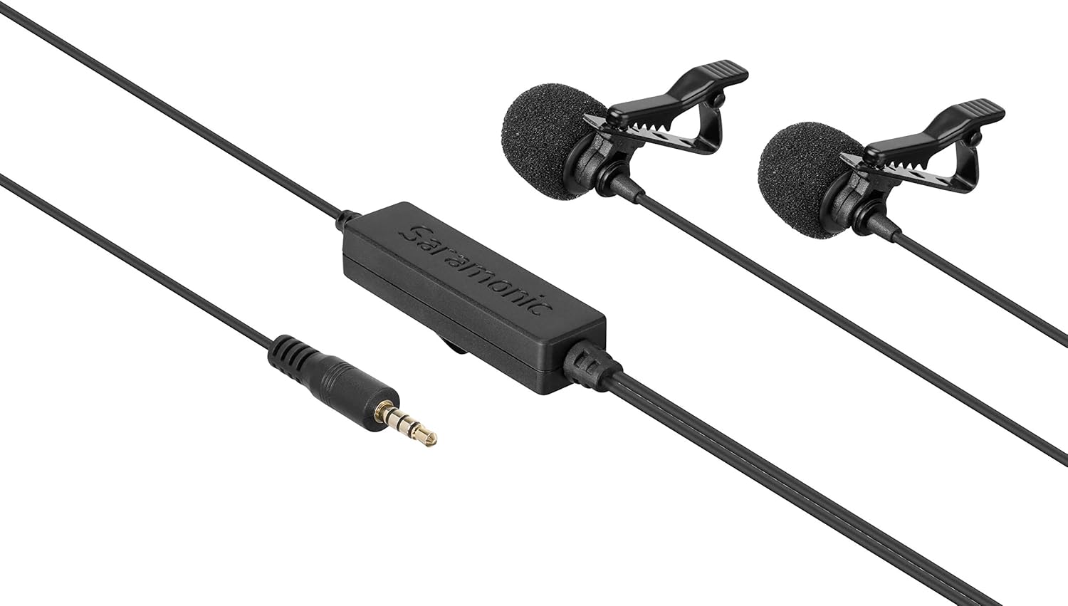 - 2 hochwertige Lavalier-Mikrofone, die an einen einzigen Mikrofoneingang angeschlossen werden können.