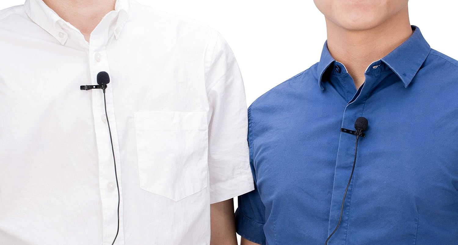 - Eine kostengünstige Lösung zum Anstecken von kabelgebundenen Lavalier-Mikrofonen auf 2 Personen und zum Einstecken in einen einzigen Mikrofoneingang und für eine hervorragende Klangqualität.