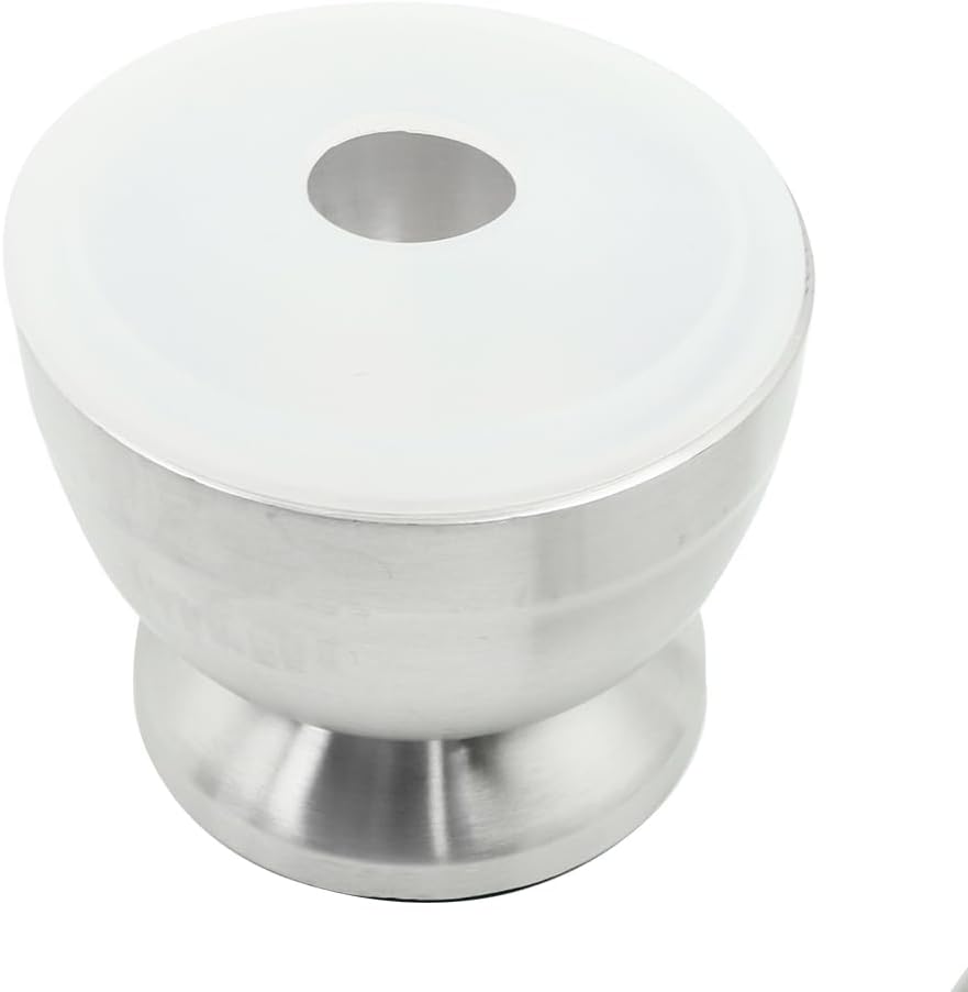 - Der aus reinem Edelstahl gefertigte Stössel fühlt sich massiv in der Hand an und der Mörser steht unbequem auf der Küchentheke. Die Polsterung an der Unterseite sorgt dafür, dass er noch fester sitzt.