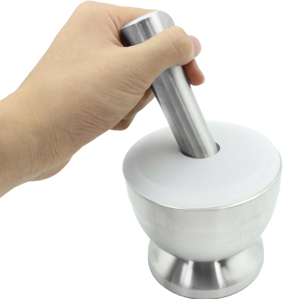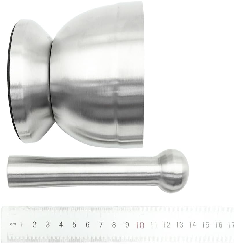 - Mörser und Stössel sind aus lebensmittelechtem 18/8 Edelstahl gefertigt. Sie sind nicht nur rostfrei, sondern auch resistent gegen Beschädigungen und Korrosion durch säurehaltige Lebensmittel.