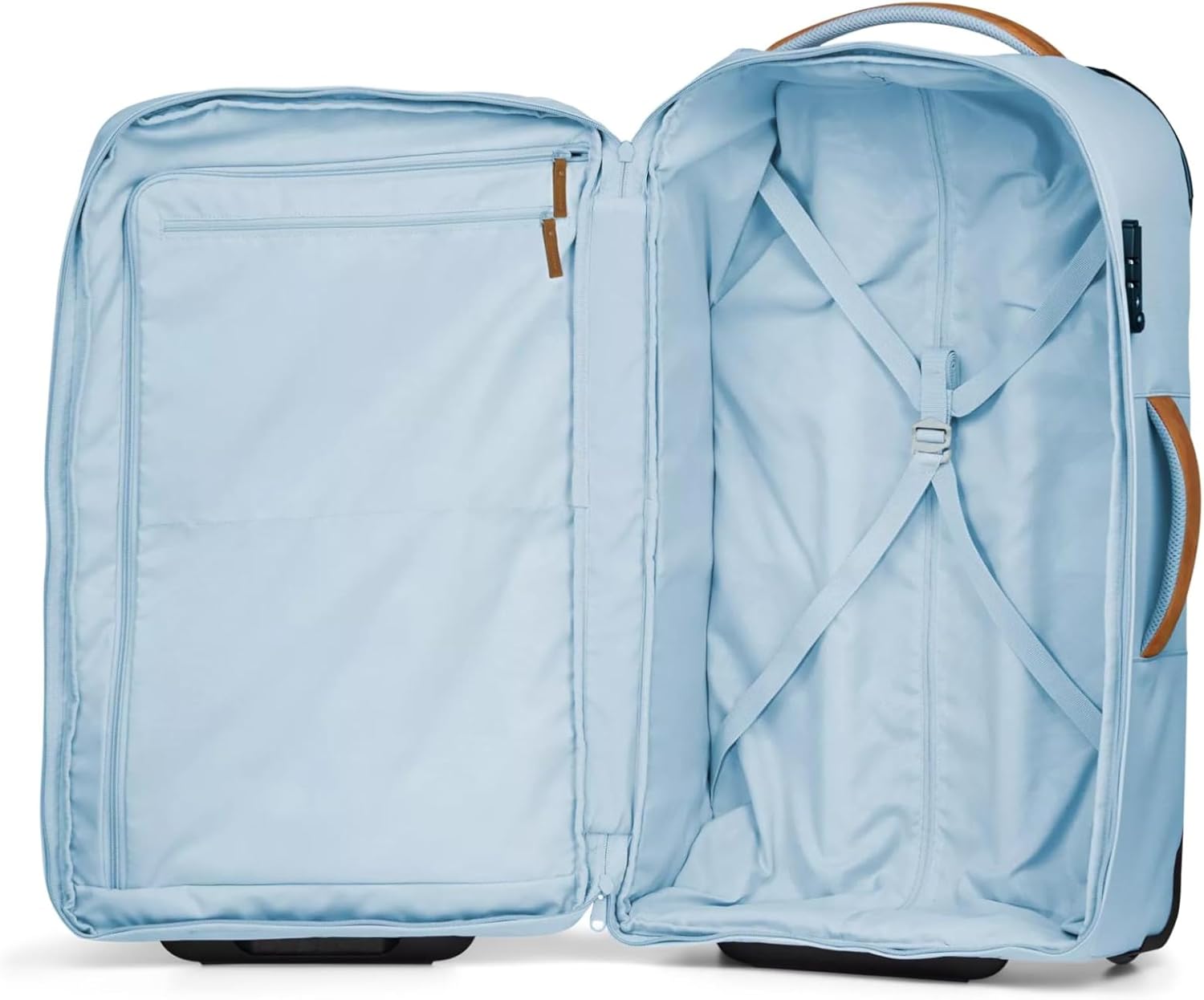 - Organisation – Der Reisekoffer mit Rollen verfügt über ein grosses Hauptfach mit Kompressionsgurten, ein grosses Deckelfach und kleines Deckelfach im Inneren und aufgenähtes Fach für eine Adresskarte.