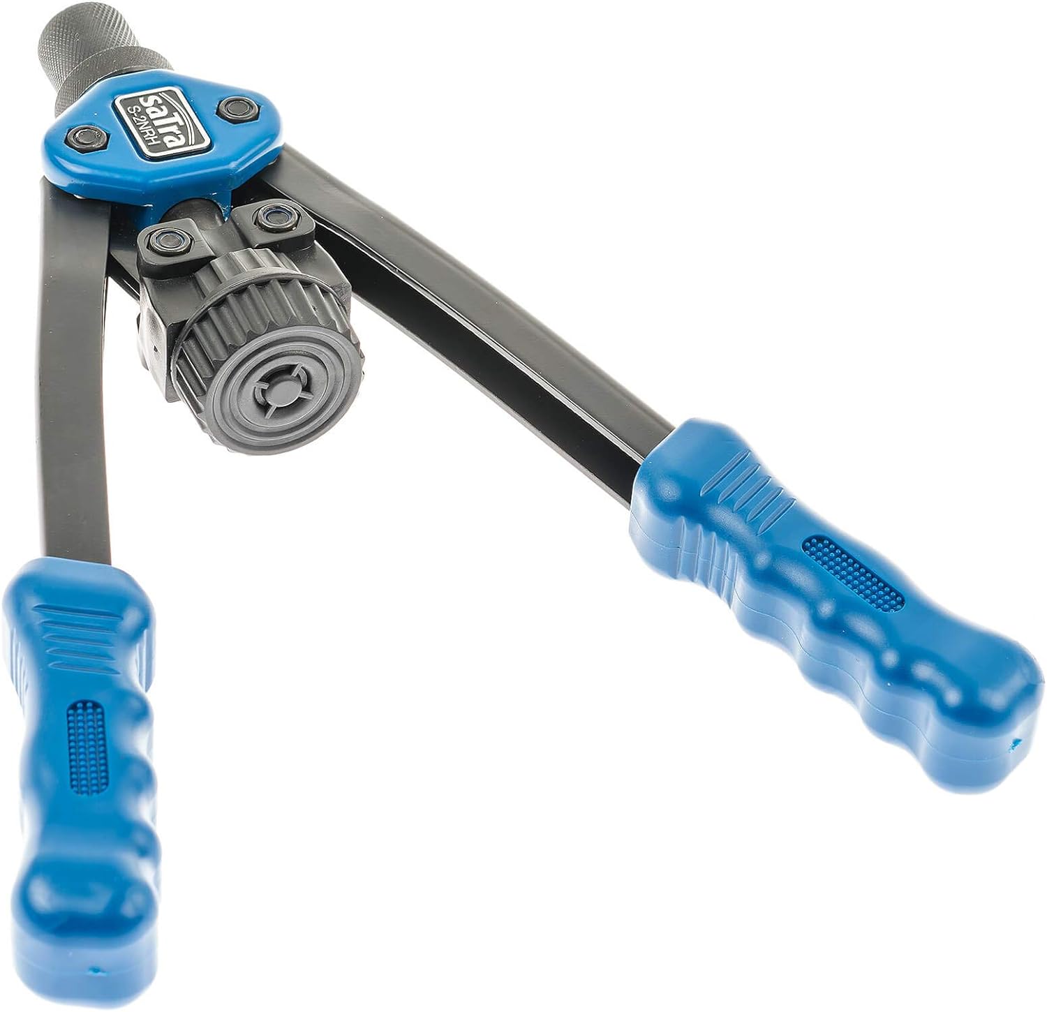 - kompakte Bauweise, solide Stahlschenkel speziell geformte Griffe für hohe Hebelwirkung einstellbarer Weg zum ziehen der Nietmutter
