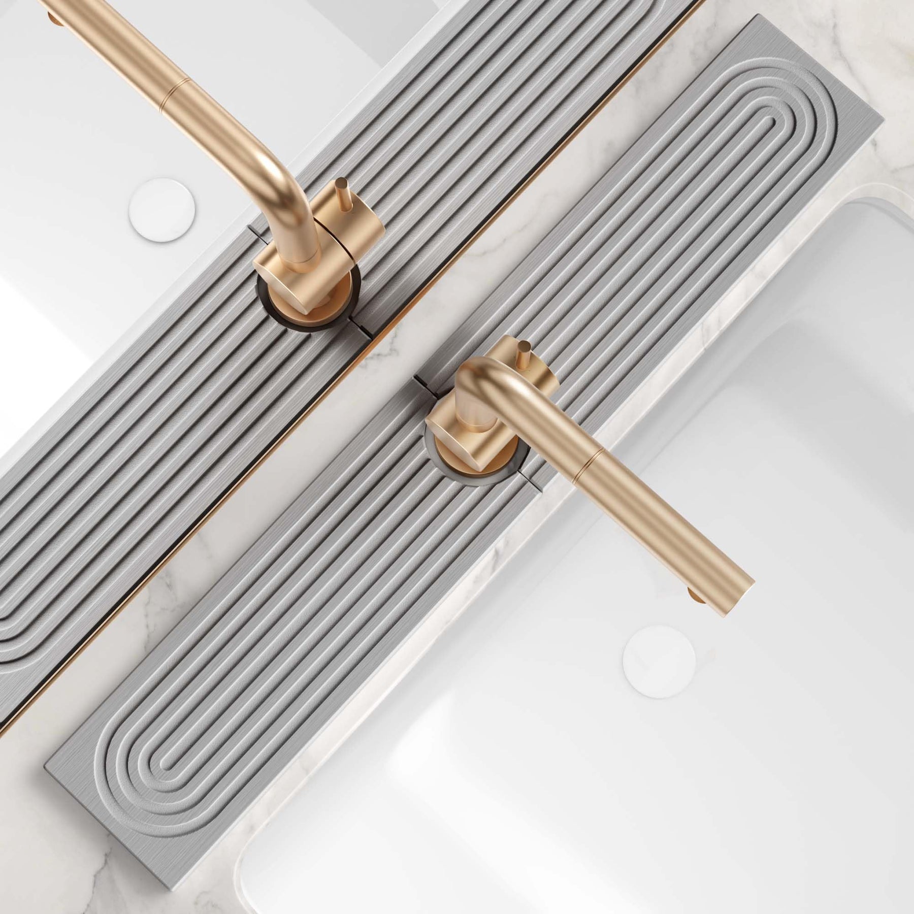 - Stellen Sie sicher, dass der Stein keine Waschbeckenknöpfe oder Spender bedeckt. ➋ Der Abstand zwischen Wasserhahn und Wand muss über 1,8 cm betragen. Der Durchmesser des Wasserhahns muss unter 6,3 cm liegen. Grösse: 59,9 x 9,9 x 1 cm, mit einem 6,3