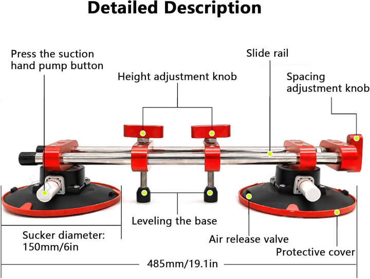 - đ„ăStarke Saugkraft Luftleckageă: Dieser Nahtsetzer verfĂŒgt ĂŒber zwei manuelle 6-Zoll-Saugnapfe aus Gummi und verfĂŒgt ĂŒber eine starke und stabile Saugkraft ohne Luftleckage. Handpumpen-VakuumsaugnĂ€pfe halten die Arbeitsplatten mĂŒhelos fest,