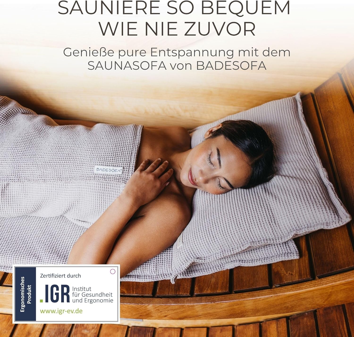 - HANDGEFERTIGTE QUALITÄT AUS EUROPA – Jedes BADESOFA-Produkt wird mit höchster Präzision und Liebe zum Detail in Europa gefertigt. Die hochwertige Sauna-Decke aus Baumwolle überzeugt durch ihre Hitzebeständigkeit und ist angenehm auf der Haut,