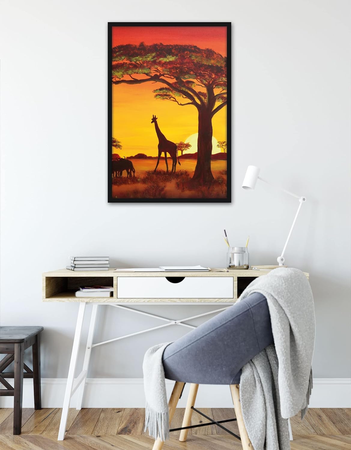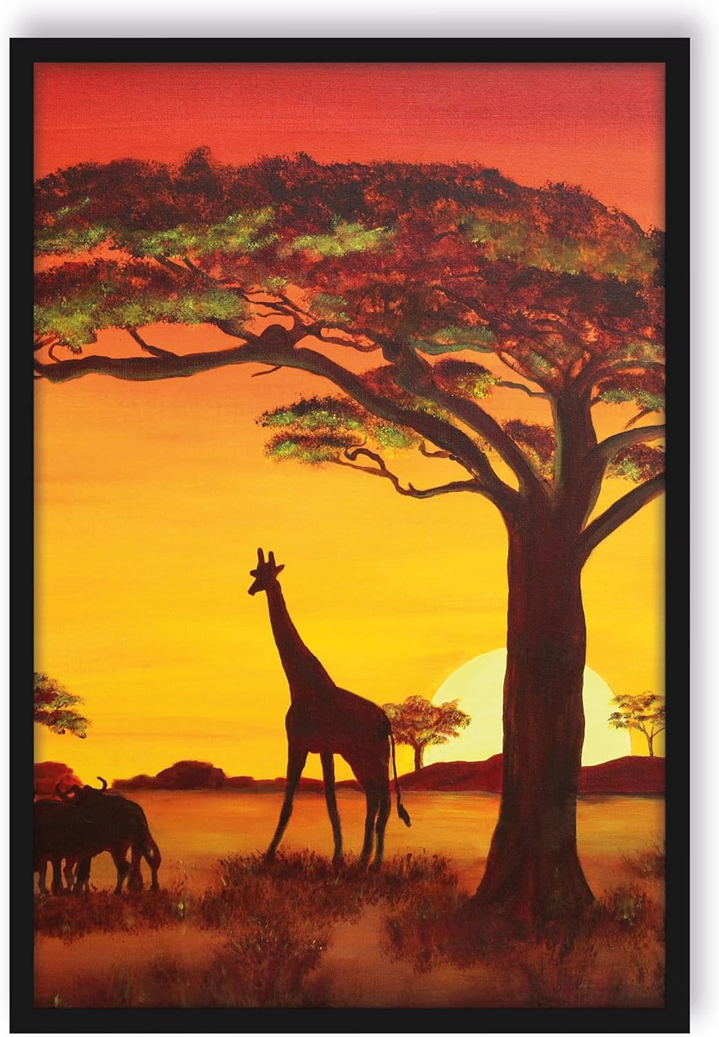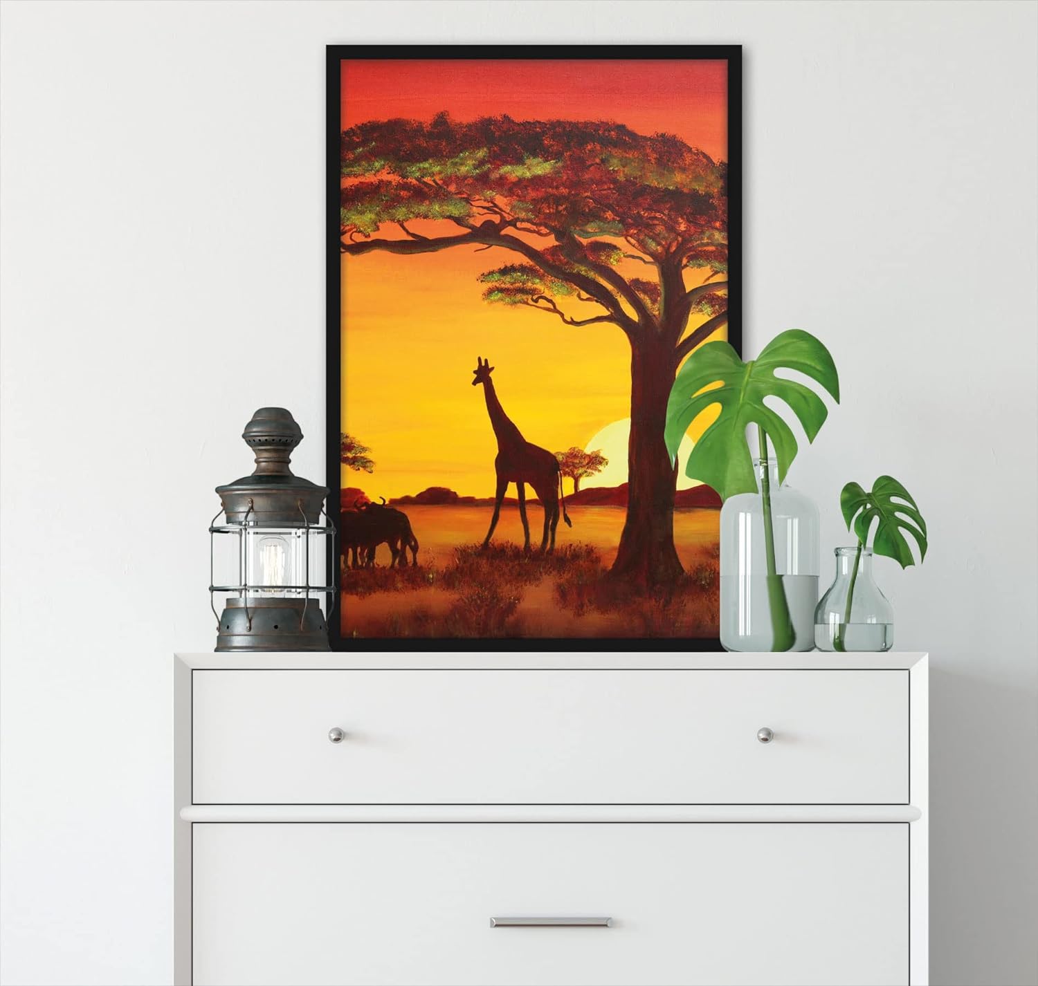 Generisch Savanne mit Wildtieren, Poster im Bilderrahmen / Format: 100x70cm / Kunstdruck gerahmt, 10