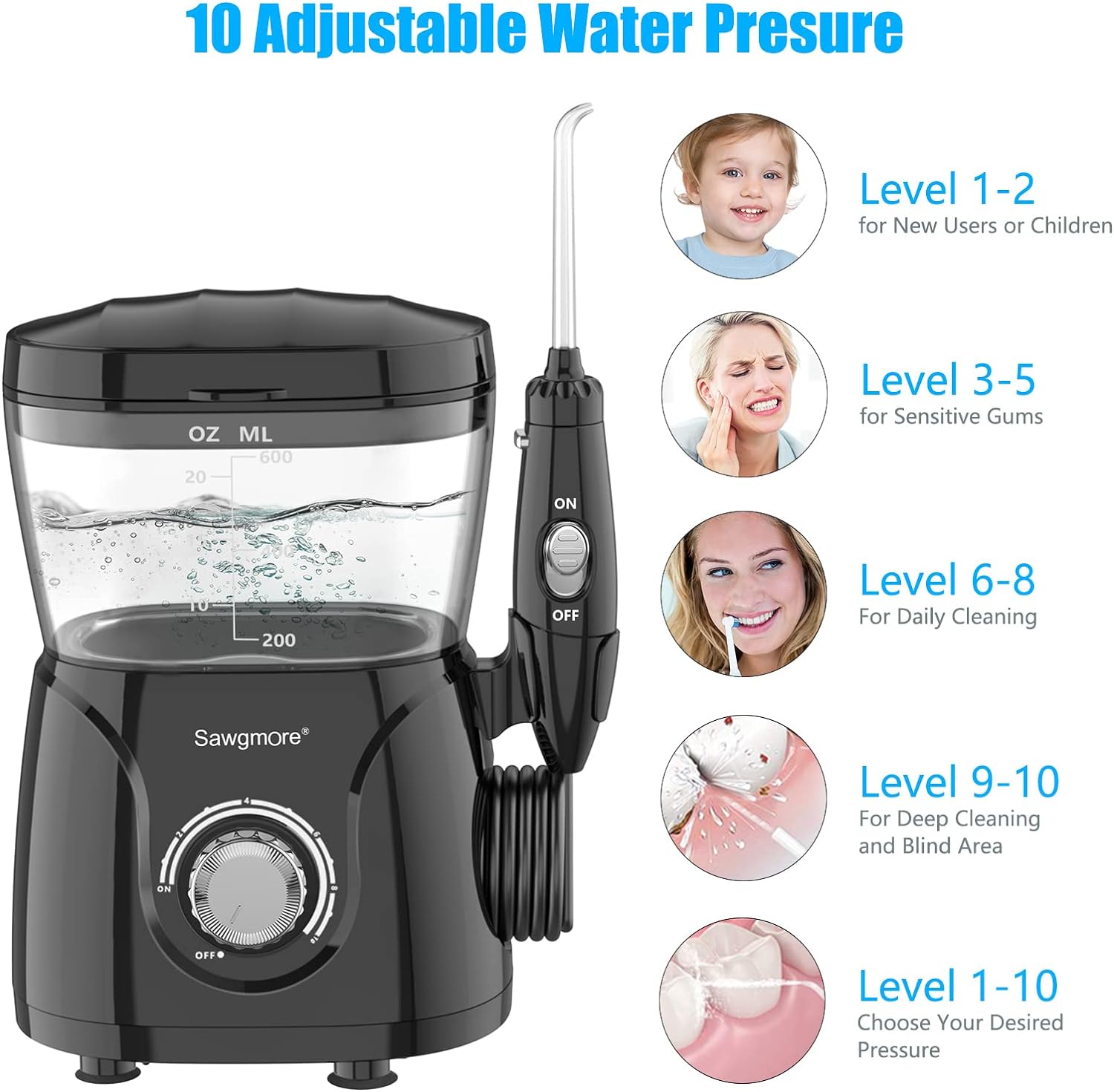 - 【Einfache und effiziente, gründliche Reinigung】Im Vergleich zu herkömmlichen Zahnbürsten, die die Ritzen und versteckten Bereiche der Zähne nicht gründlich reinigen können. Die elektrische Munddusche von Sawgmore verfügt über einen