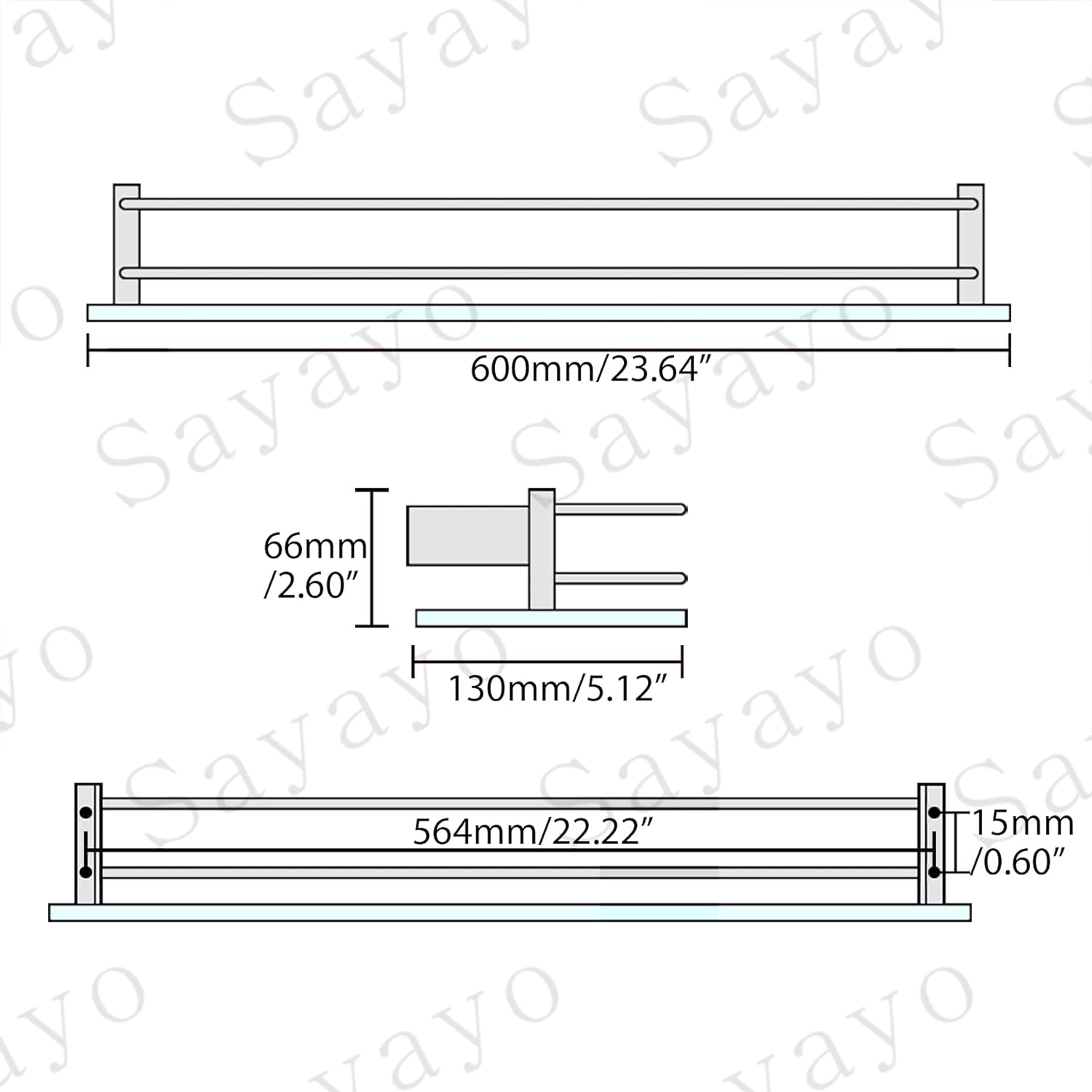- Produktmasse - 600mm x 130mm x 66mm (L x B x H), Schrauben und Dübel sind im Lieferumfang enthalten.