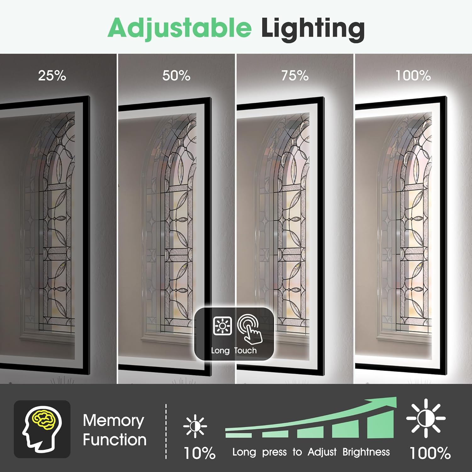 - 🎀Intelligente Speicherfunktion & Antibeschlag: Unser LED-Badezimmermirror verfügt über eine Speicherfunktion, die Ihre letzte Lichteinstellung speichert – so müssen Sie nicht jedes Mal neu einstellen. Verabschieden Sie sich von beschlagener