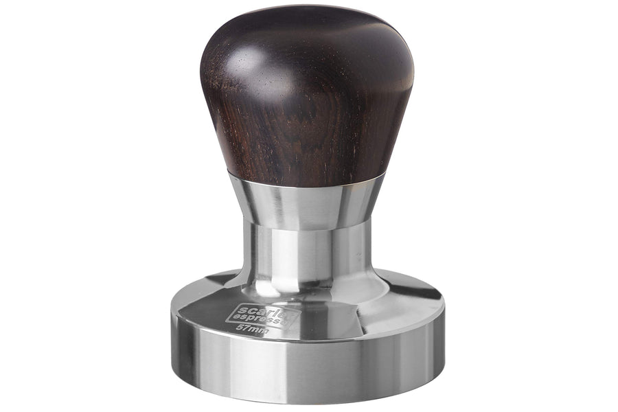 - Hochwertiger Tamper mit präzisionsgefertigter Tamperbase aus massivem, rostfreiem Edelstahl und Griff aus wahlweise PVC mit von CNC-Maschinen glanzgedrehter Tamperbase oder Griff aus feinstem Edelholz mit hochglanzpolierter Tamperbase.