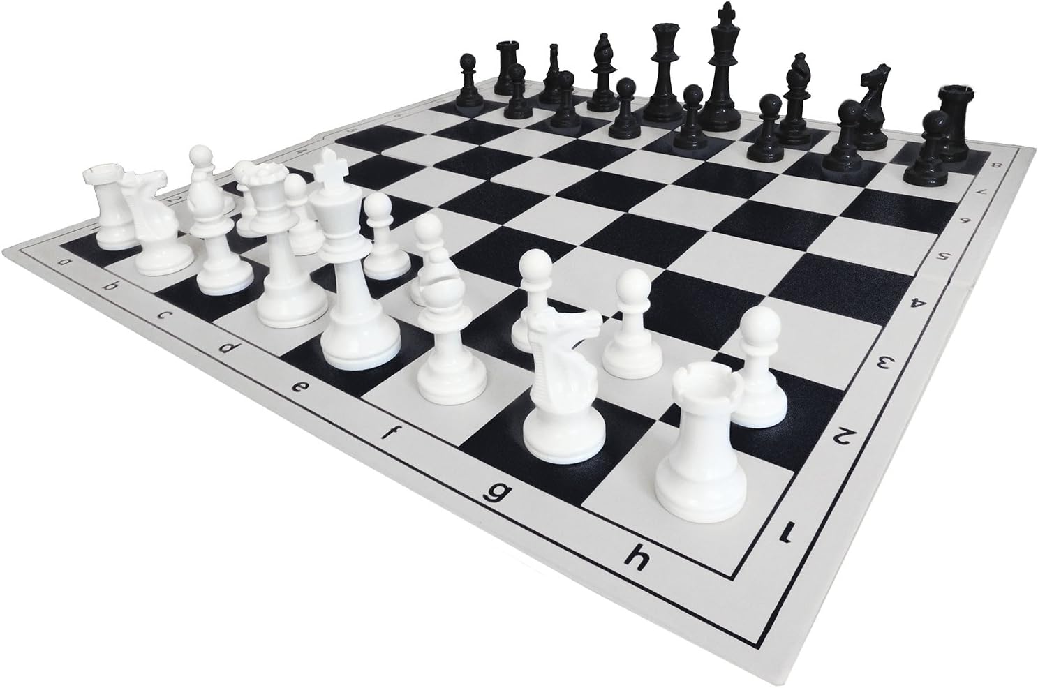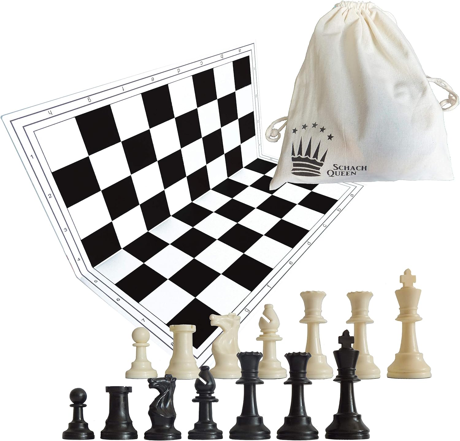 - Brett: schwarz/weiss, Schachfiguren schwarz/weiss