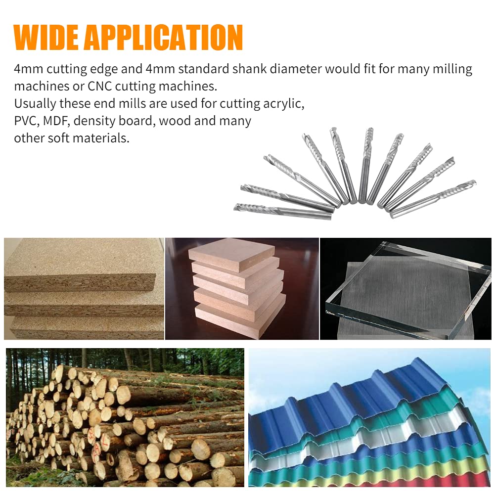 - ➤ 【Anwendungsbereich】 Eine Schneide von 4 mm und ein Standard-Schaftdurchmesser von 4 mm sind für viele Fräsmaschinen oder CNC-Schneidemaschinen geeignet.