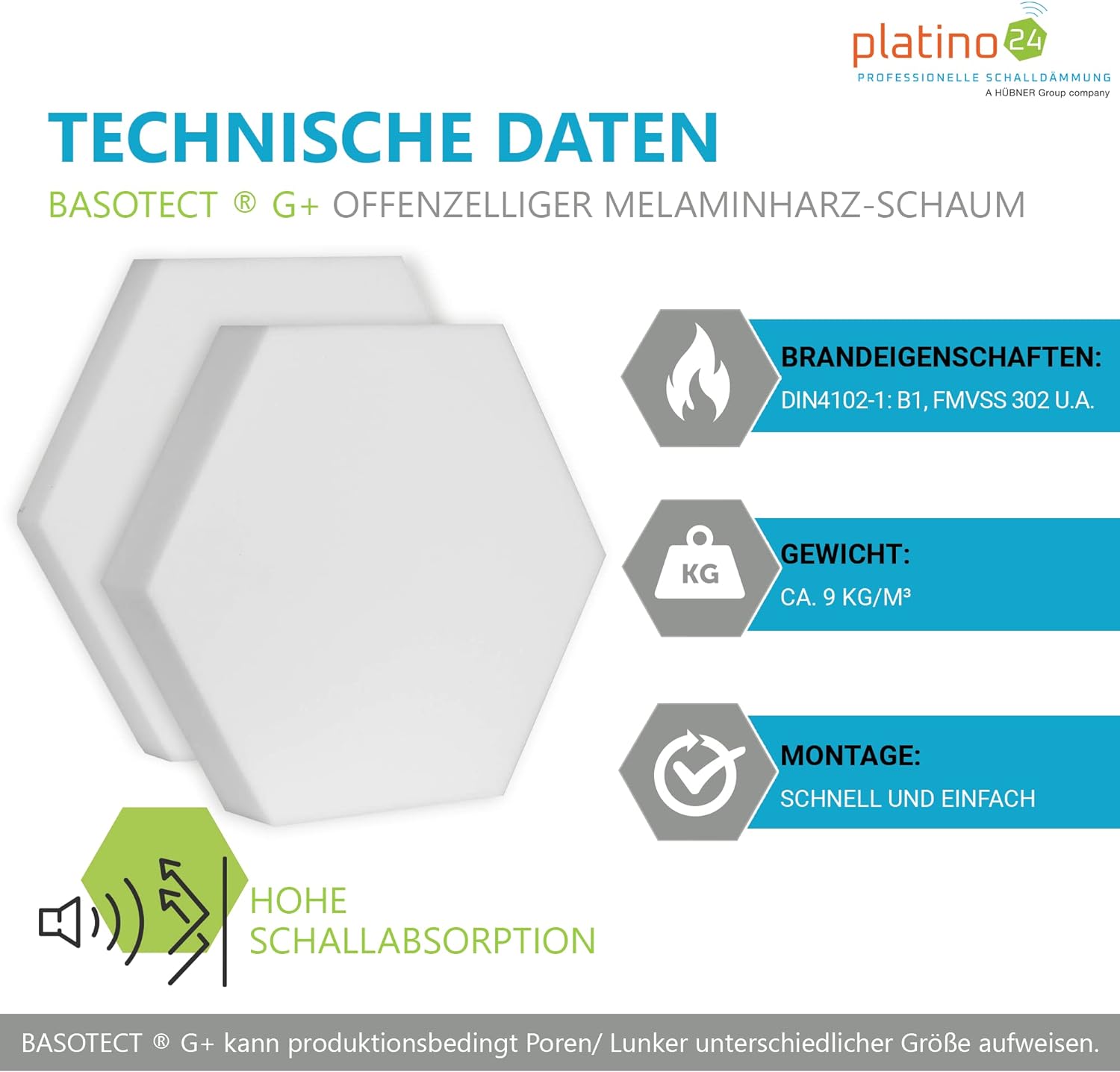 - Technische Daten Basotect: ◻ Schwer entflammbar nach DIN4102-1: B1, FMVSS 302 u.a ◻ Offenzelliger Melamin-Schaumstoff ◻ Farbe: HELLGRAU ◻ Raumgewicht: ca. 9 kg/m³ ◼ Basotect G+ ist eine Marke der BASF ◼ Basotect G+ kann produktionsbedingt