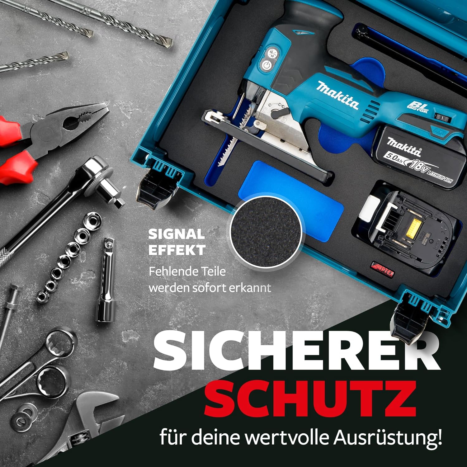 - 𝖯𝖠𝖲𝖲𝖦𝖤𝖭𝖠𝖴 𝖦𝖤𝖥𝖱Äss𝖳: Wir bieten den perfekten Schutz durch millimetergenaue Aussparungen die gleichzeitig ein Verrutschen des Werkzeugs verhindern