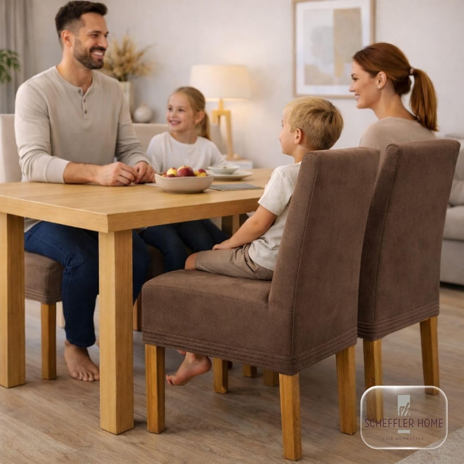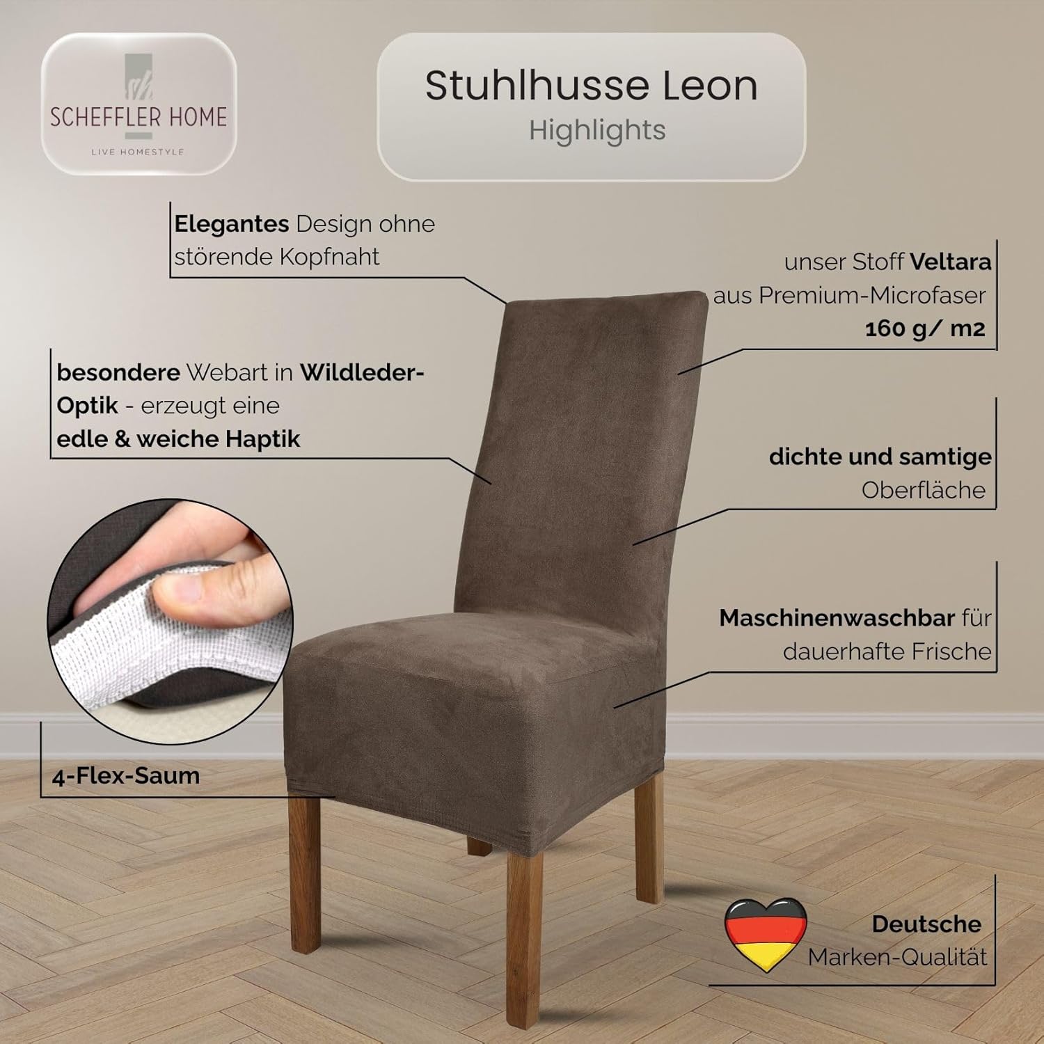 - LUXURIÖSE STUHLHUSSEN LEDEROPTIK - Unsere Stretch Stuhlhussen aus strapazierfähigem Material in Wildlederoptik verleiht Ihren Stühlen einen eleganten & luxuriösen Look, der jeden Raum aufwertet.