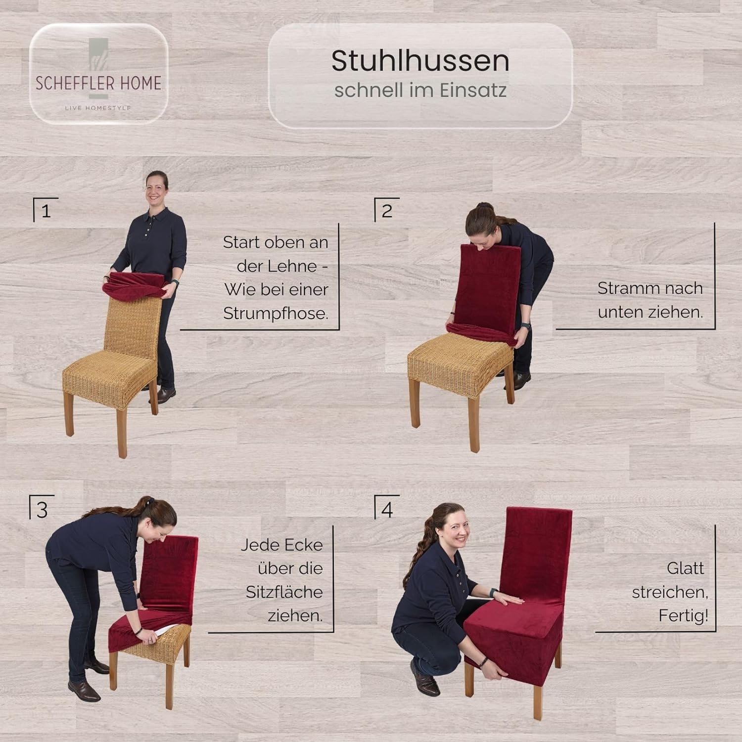 - FESTER HALT - Unsere Stuhl Überzug in Rau-Lederoptik bestehen aus 90% Polyester & 10% Elasthan (160 g/m²). Die Stuhlhussen Kunstleder lässt sich schnell & einfach über den Stuhl spannen.