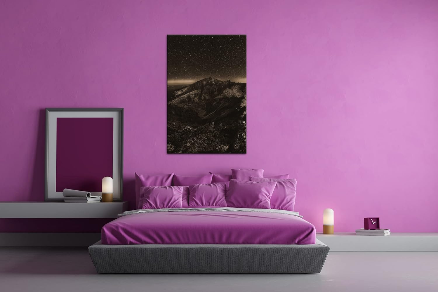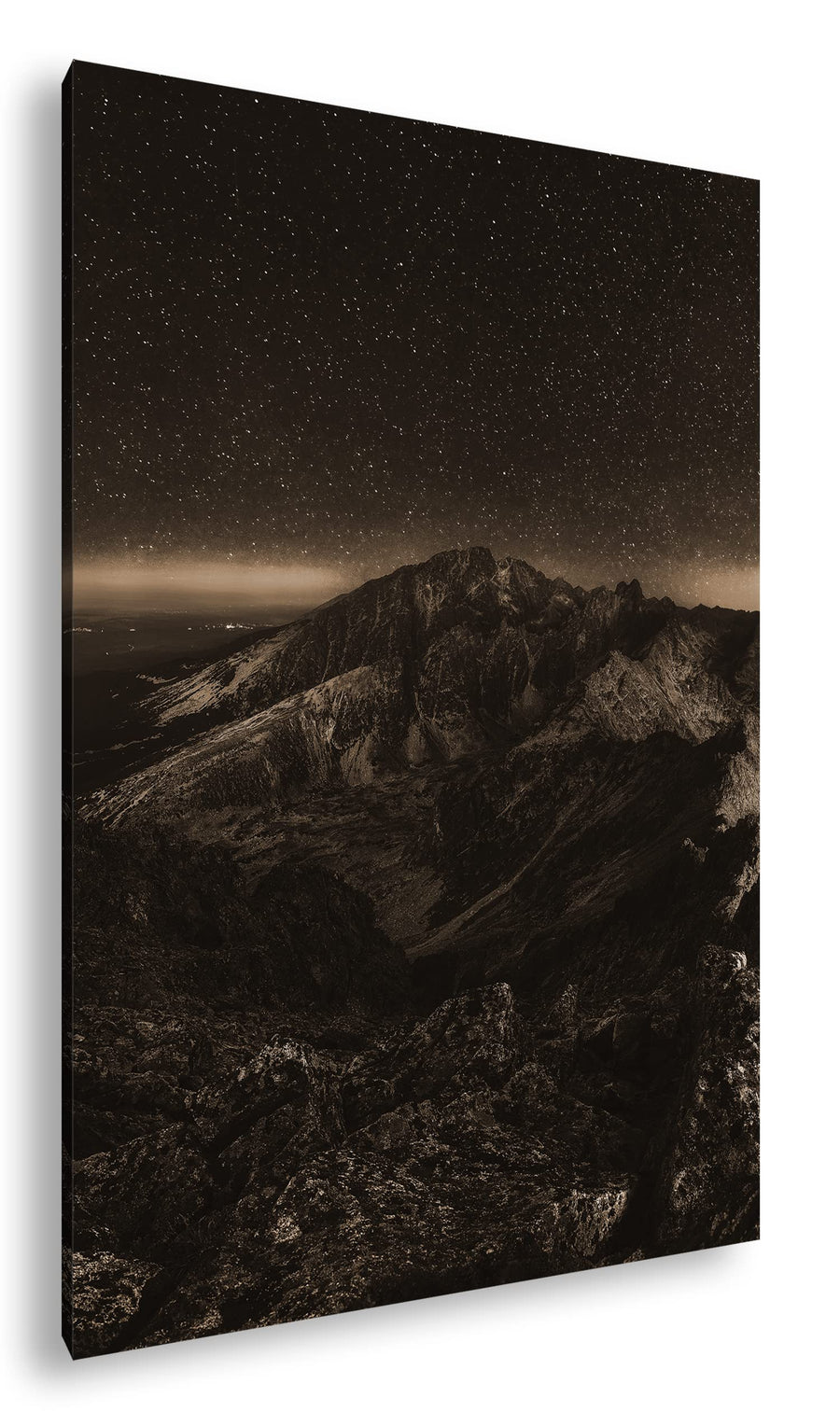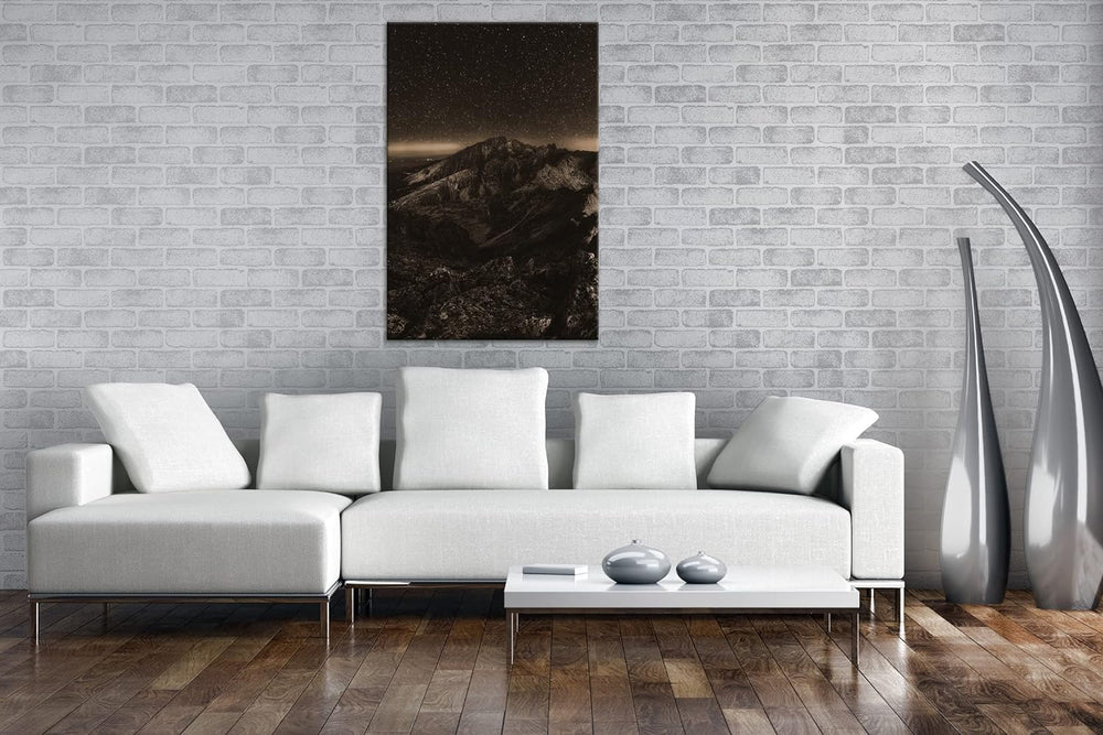 scheinende Nacht über den Bergen Effekt: Sepia, Format: 80x60 als Leinwandbild, Motiv fertig gerahmt