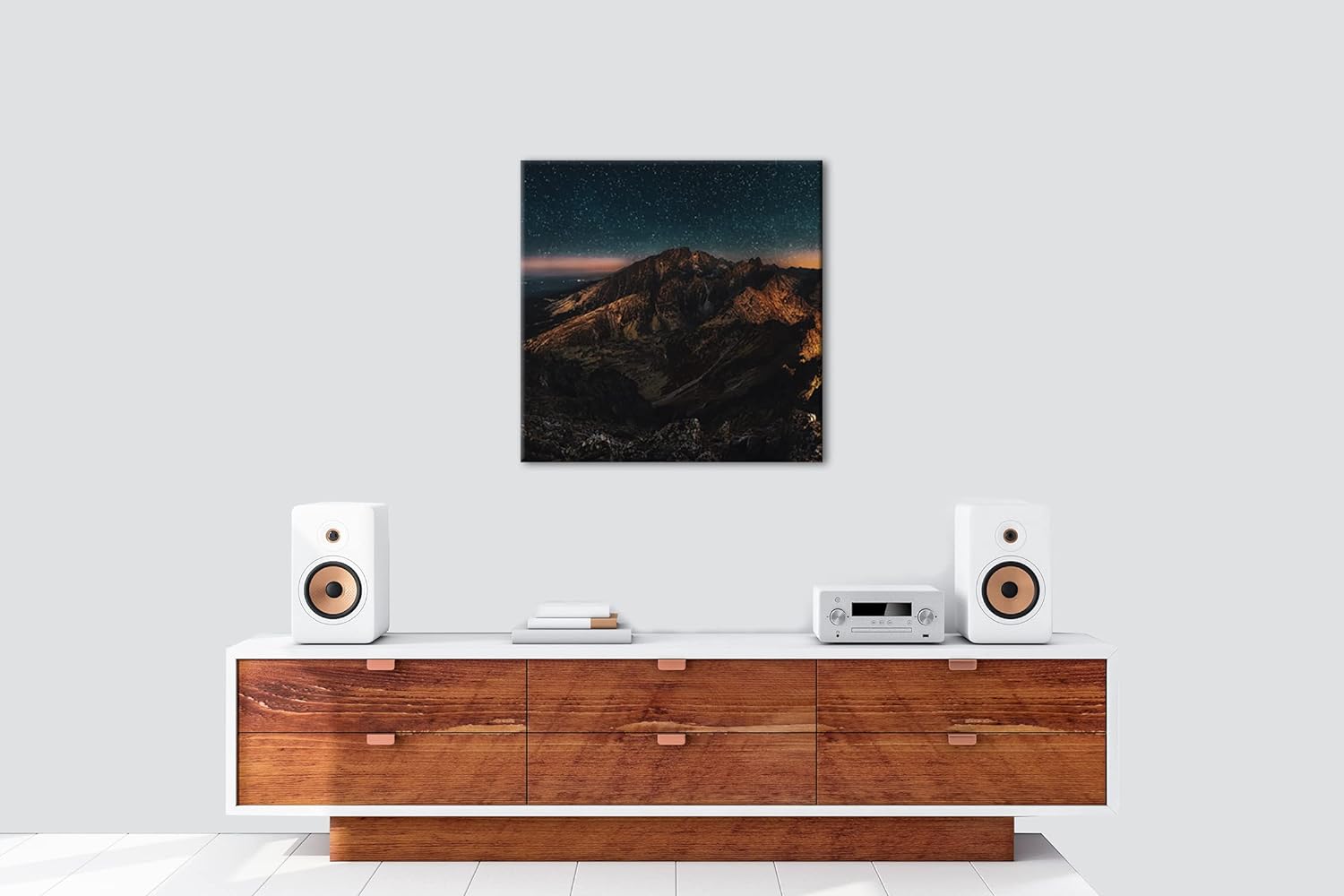 scheinende Nacht über den Bergen Format: 60x60 als Leinwandbild, Motiv fertig gerahmt auf Echtholzra