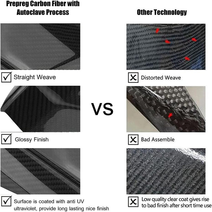 - Vorimprägniertes Kohlefasermaterial (Trockenkohle): Diese Scheinwerferabdeckung besteht aus hochwertiger Kohlefaser für maximale Haltbarkeit. Die Abdeckungsoberfläche ist mit einer Anti-Ultraviolett-Beschichtung beschichtet, um die transparente