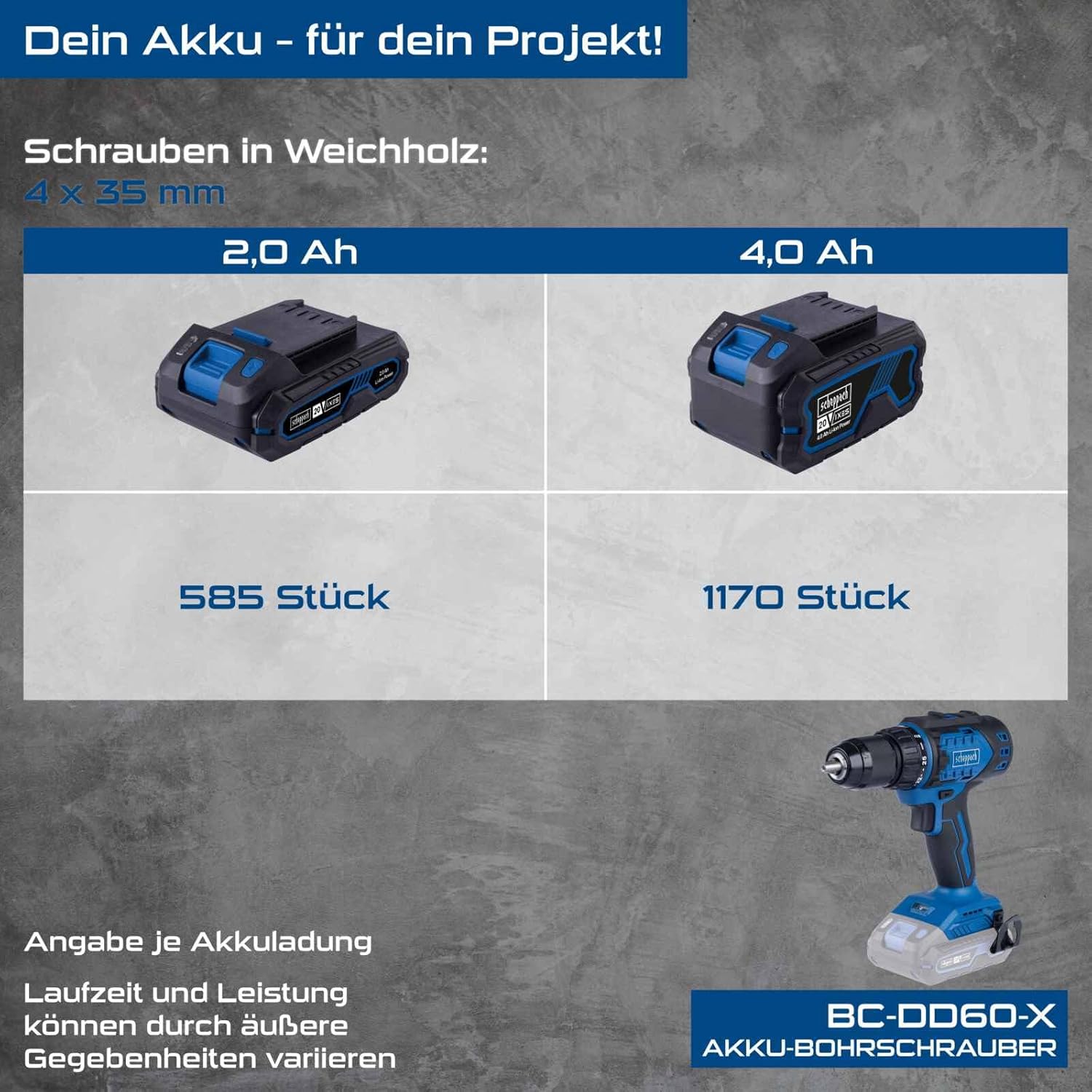 - Hohe Leistung dank einem Drehmoment von maximal 60 Nm | Schnelles, werkzeugloses Umschalten zwischen Bohr- und Schraubfunktion