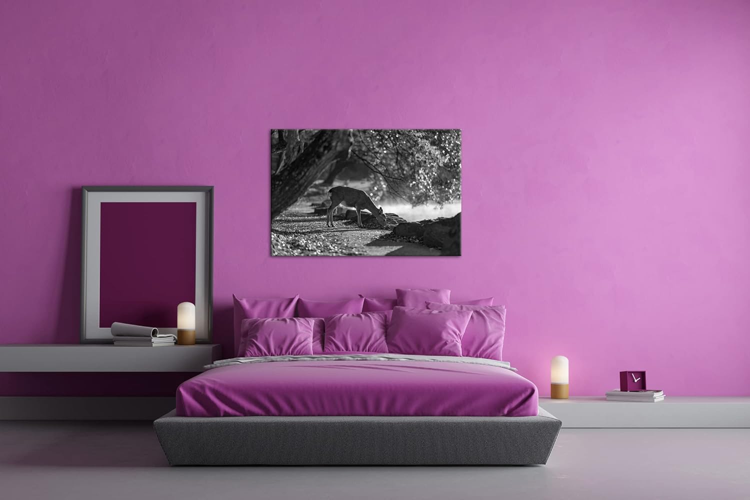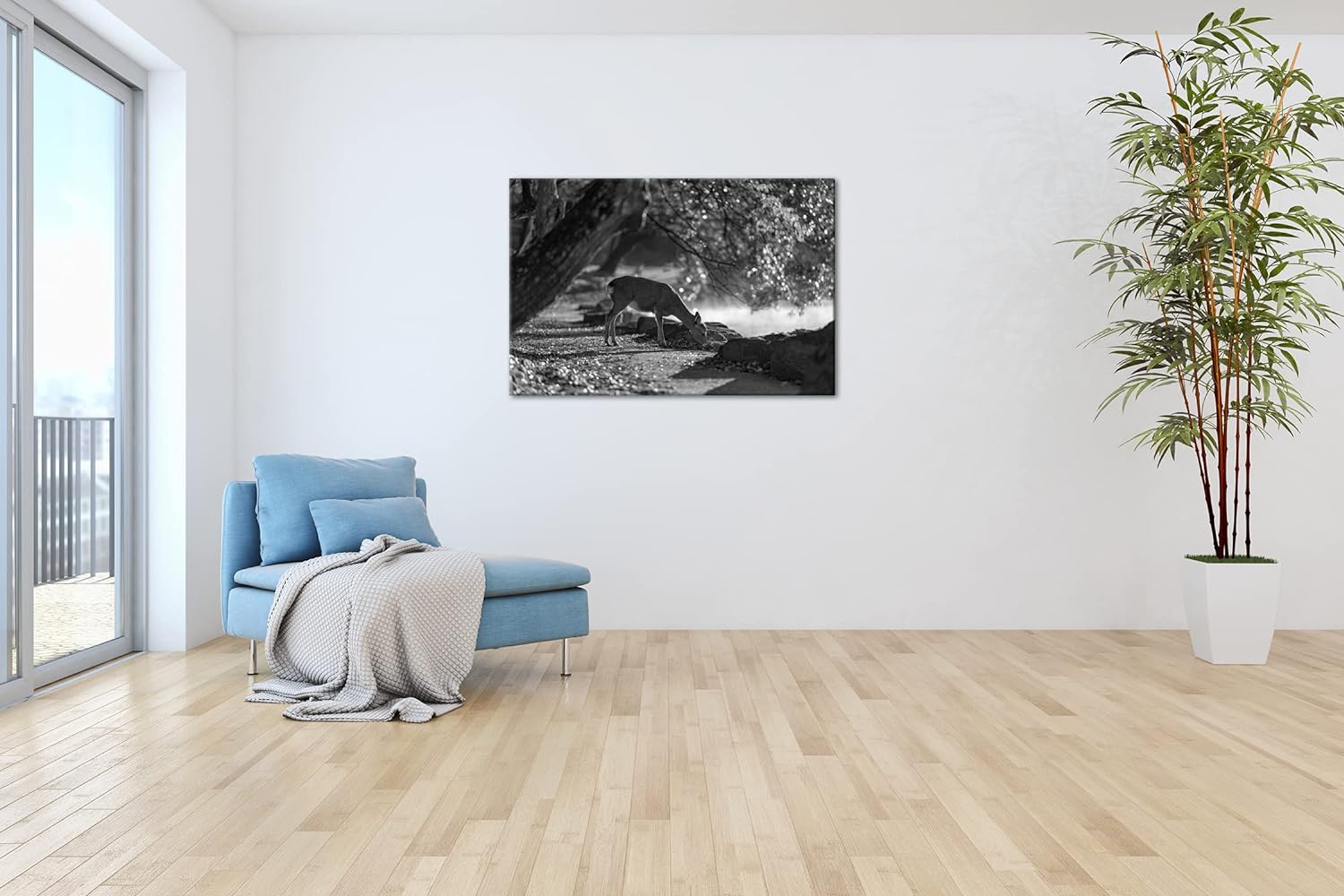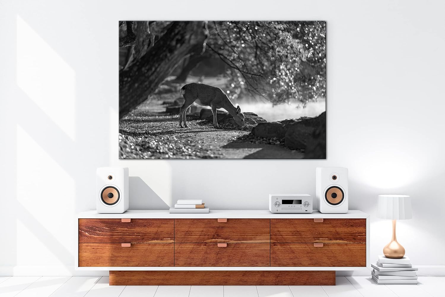 deyoli scheues Reh Format: 80x60 Effekt: Schwarz&Weiss als Leinwandbild, Motiv fertig gerahmt auf Ec