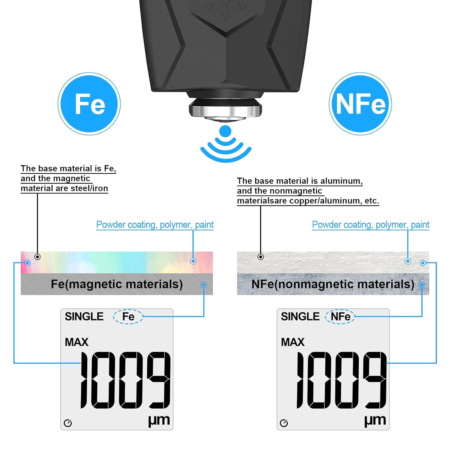 - 【Weite Anwendung】 Dieses Erscheinungsbild verfügt über eine weiche Gummibeschichtung, die verschleissfest ist. Sehr geeignet für die Inspektion der Lackdicke im Freien, wie gebrauchte Autofarbe, Pulverbeschichtung, eloxiertes Aluminium,
