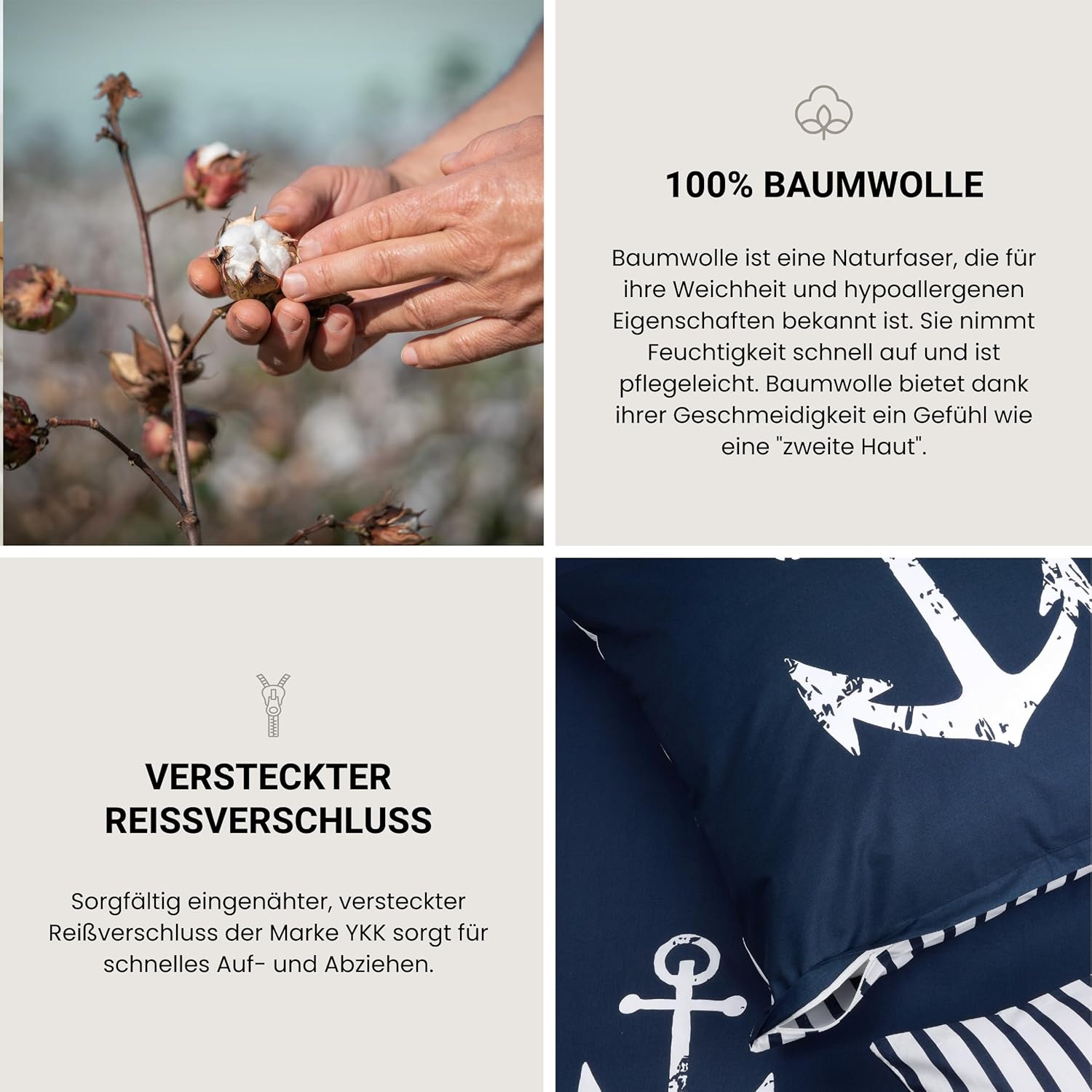 - MARITIME MOMENTE. Marineblau und Weiss - geht immer. Die frische Farbkombination macht Lust Me(e)r und lässt Sie von Ihrem nächsten Urlaub träumen. Neben dem beliebten Anker stehen Streifen im Mittelpunkt Ihres neuen Bettwäschesets. Was für eine
