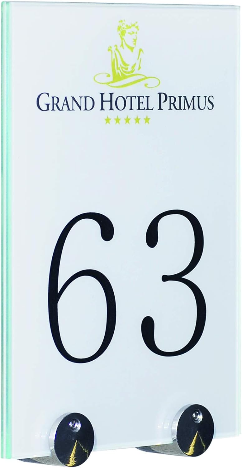 - MONTAGE: die Edelstahl-Schildhalter ohne Bohrung im Glas/Schild werden mittels Flachkopfschrauben und Dübeln an die Wand geschraubt