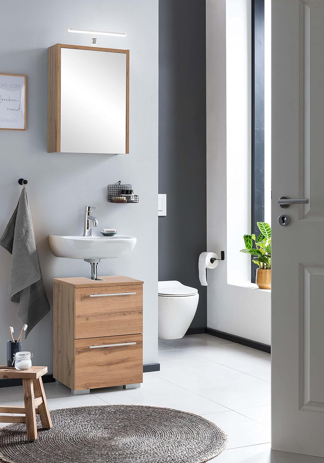 - Spiegelschrank mit einer Tür und 2 höhenverstellbaren Einlegeböden aus Glas