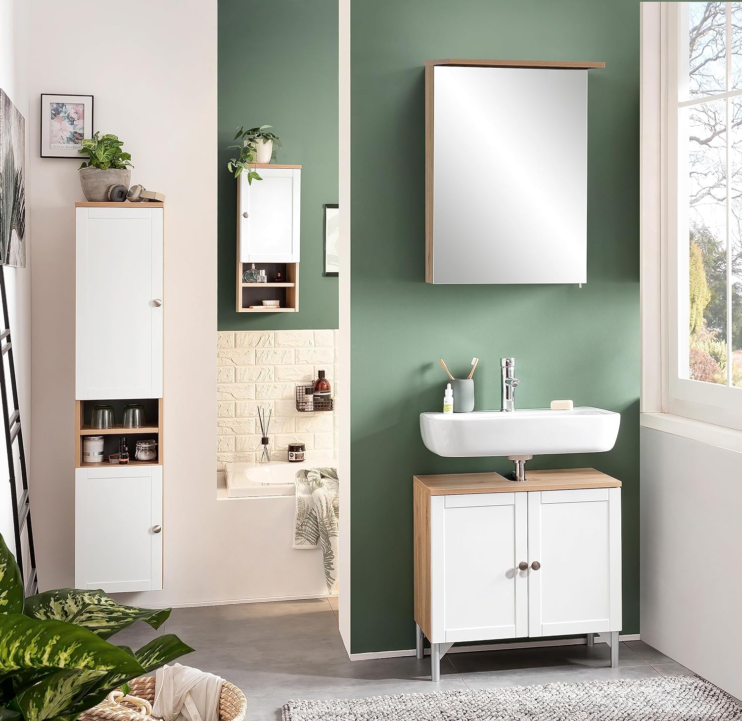 - Spiegelschrank mit 1 Tür, dahinter 2 höhenverstellbare Einlegeböden aus Glas