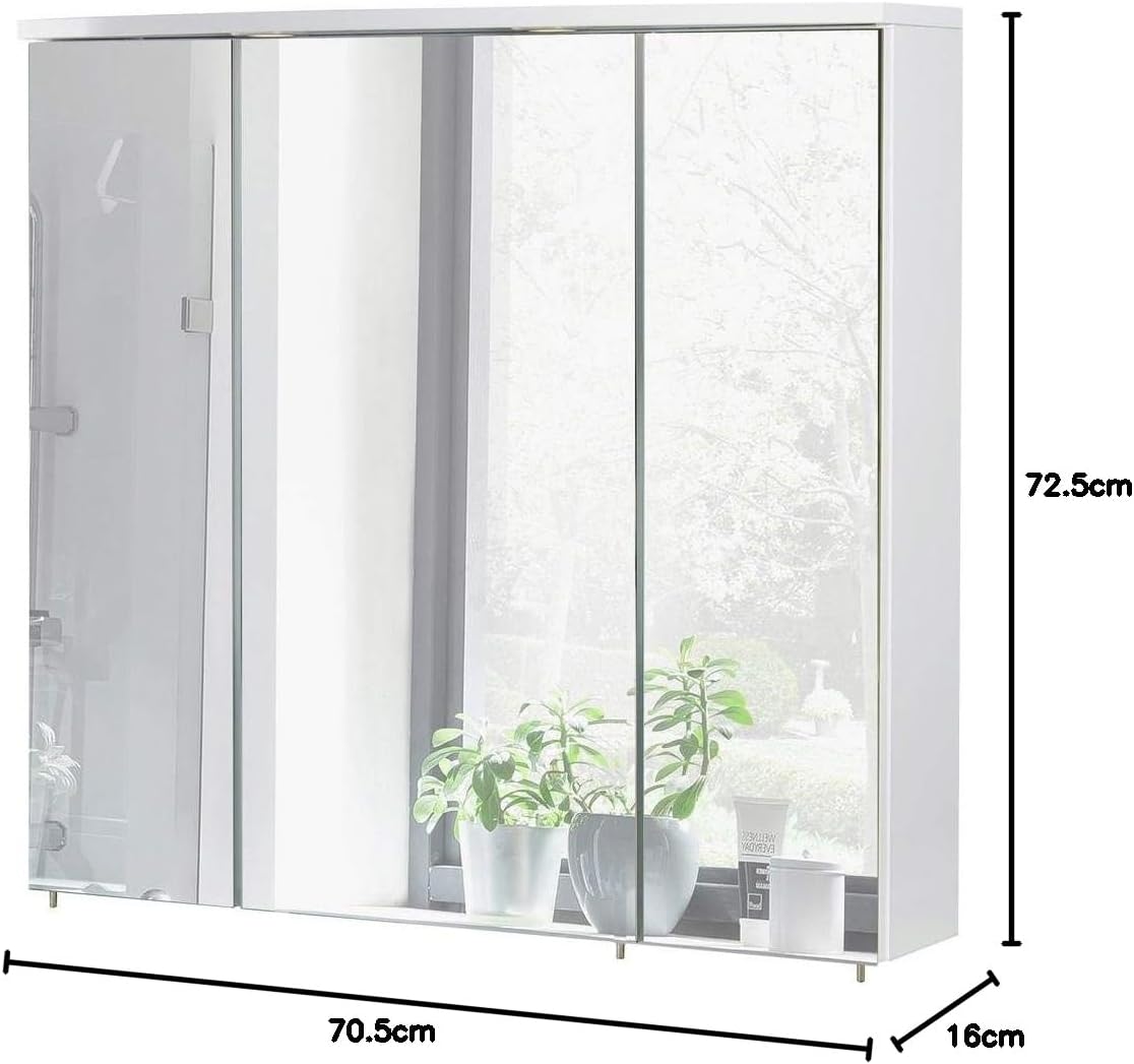 - Spiegelschrank mit 3 Türen und 6 höhenverstellbaren Einlegeböden aus Glas
