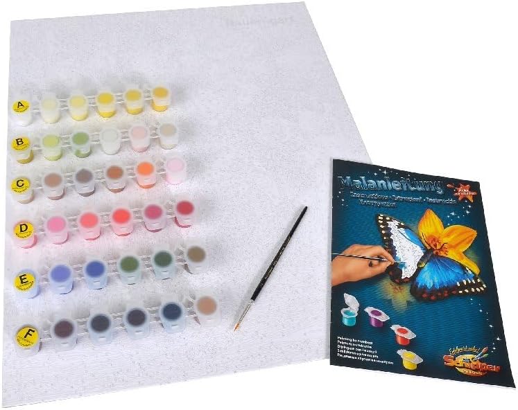 - Vollständiges Set - Der Lieferumfang beinhaltet Acrylfarben auf Wasserbasis einen Malpinsel eine Anleitung eine Vorlage und 1 Leinwand mit dem Mass: 40 x 50 cm