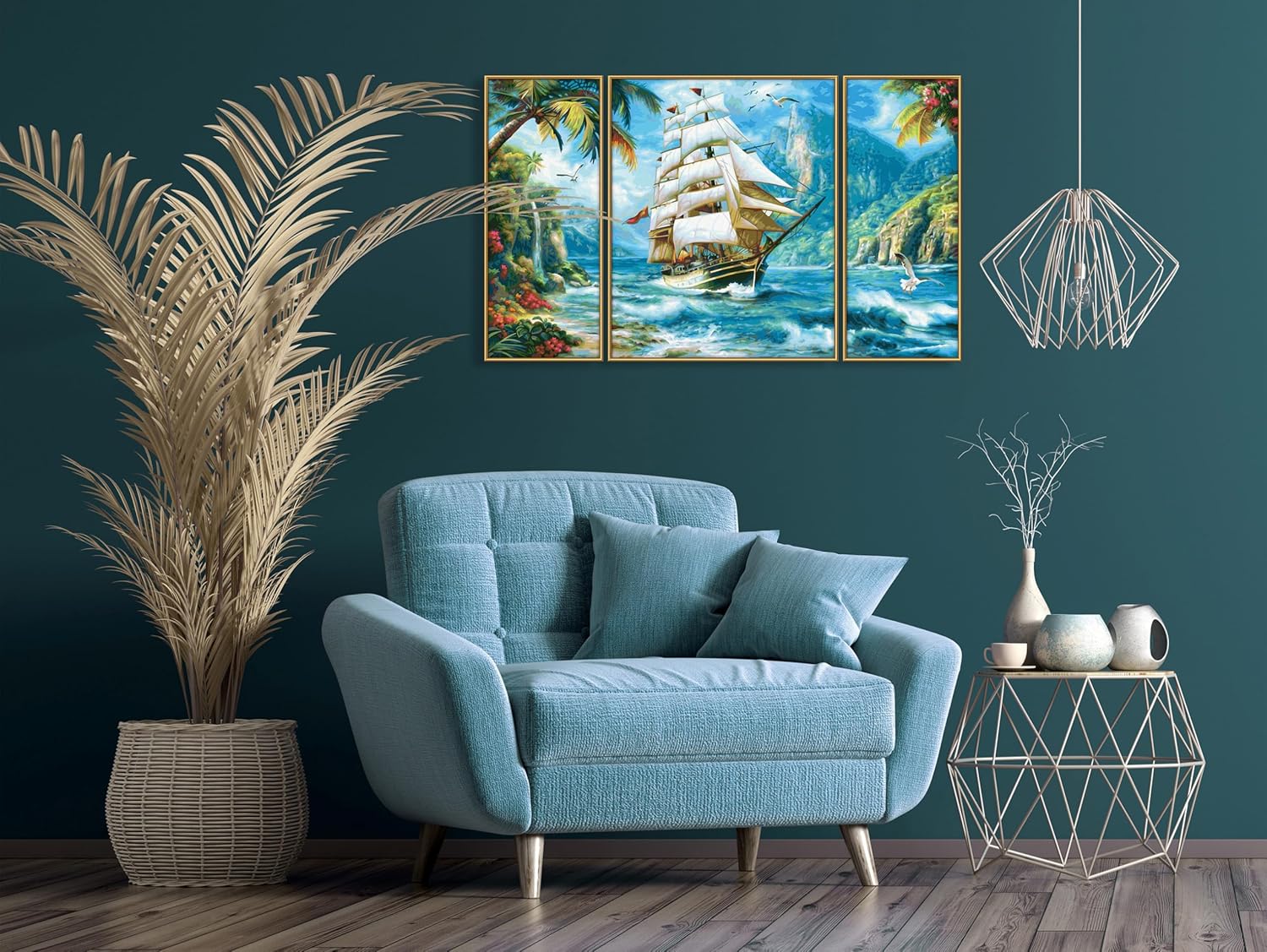 - Vollständiges Set - Der Lieferumfang beinhaltet 42 Acrylfarben auf Wasserbasis, einen Malpinsel, eine Anleitung, eine Vorlage und 3 Leinwände: 1 Mittelbild: 50 x 40 cm, 2 Seitenbilder: 50 x 20 cm