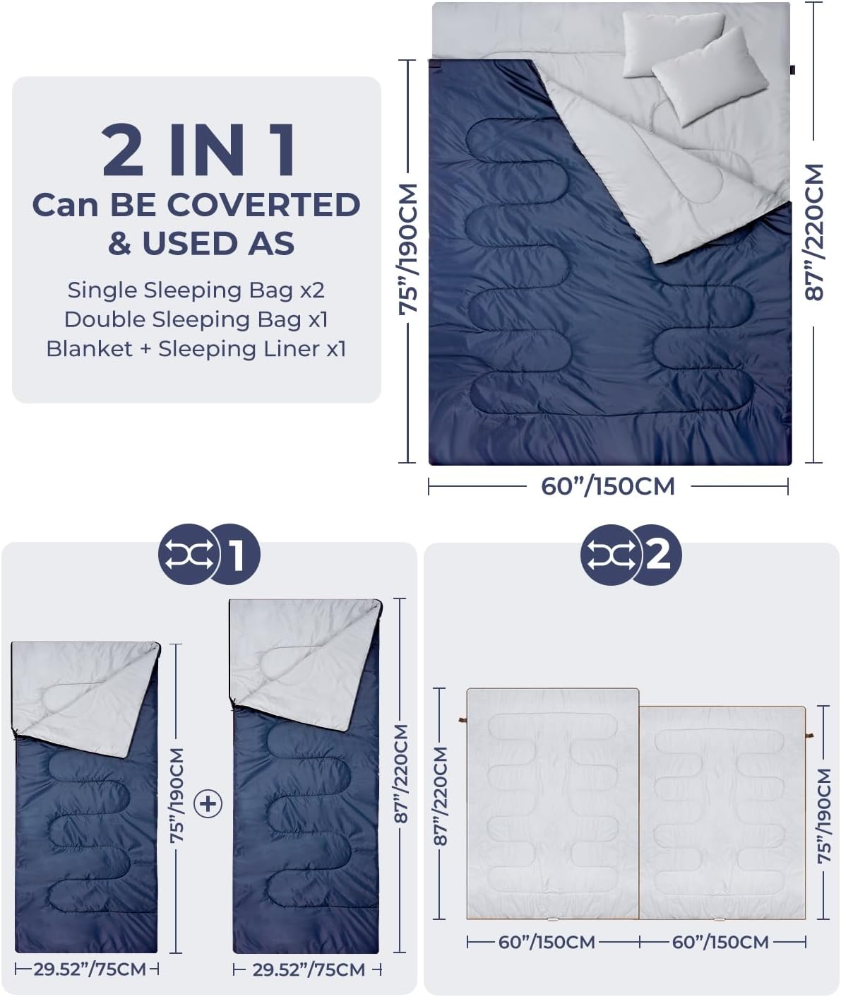 • MULTIFUNKTIONALE DECKENSCHLAFSACK: Dank der rundum verlaufenden Reissverschlüsse kann unser doppelschlafsack in zwei separate Schlafsäcke umgewandelt oder als zwei Queen Size Decken verwendet werden! Ob beim Camping im Freien oder bei einem